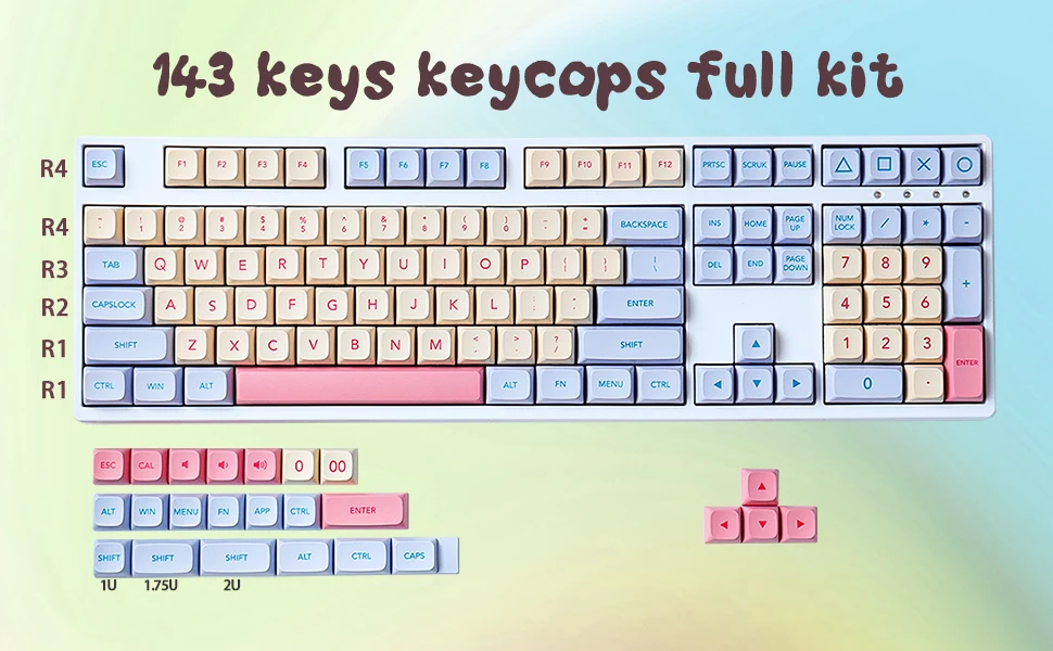 Ampliamente Compatible: este juego completo de teclas personalizadas consiste en 132 teclas para 61/64/68/71/87/96/104 teclas de Teclado mecánico con interruptor MX,. Una buena opción para que usted haga usted mismo su teclado mecánico.