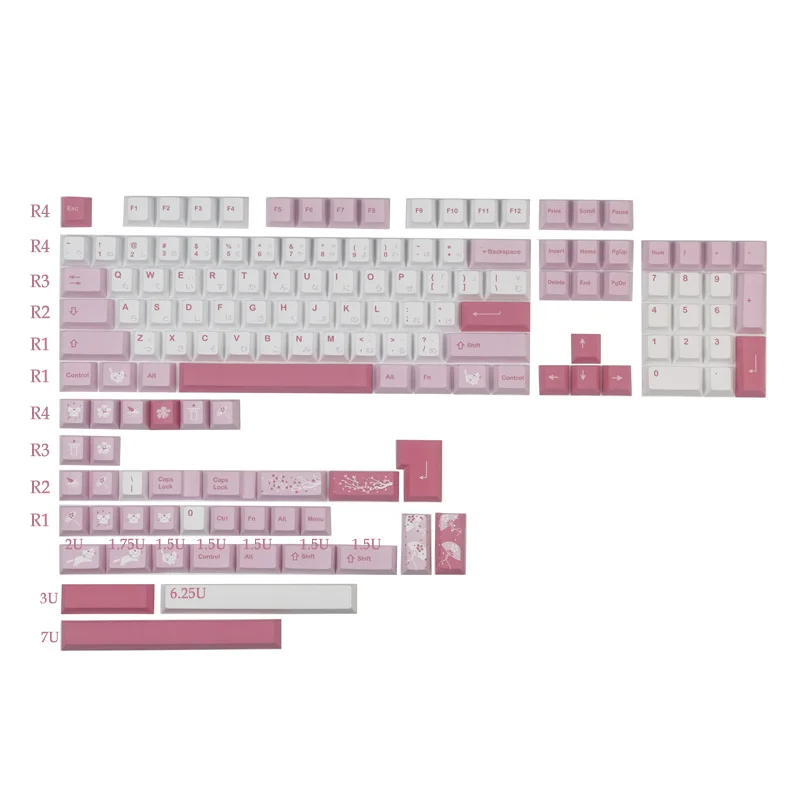 Número de teclas: 141 teclas, incluye cambio 1.25u 1.75U 2U, novela 1.5U, Barra espaciadora 3u 6.25U 7U