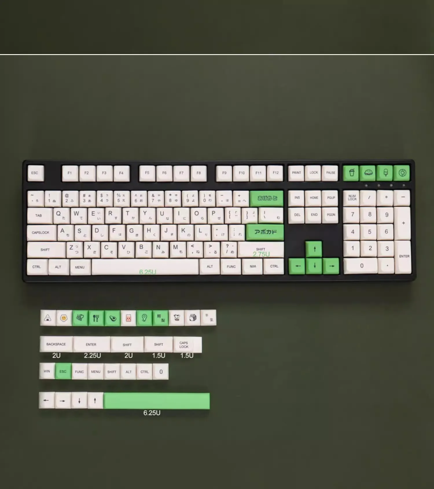 Comprar GMK-teclas de aguacate verde, teclas subcama de tinte PBT, perfil XDA, teclas en inglés japonés con barra espaciadora 2.25U 2.75U 3U 7U, entrada ISO