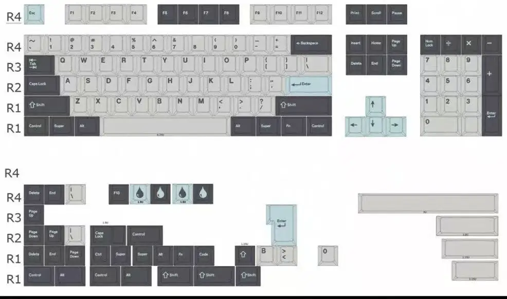 Número de teclas: 143 teclas, incluye cambio 1,75U 2U, barra de espacio, 2,25U 2.75U 6,25U 7U espacio