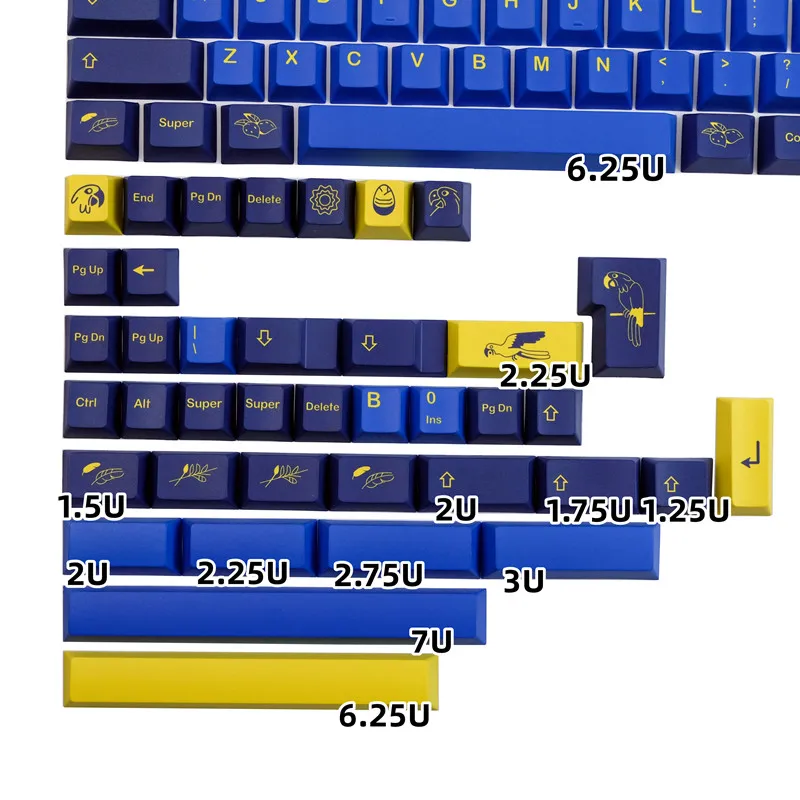 Número de teclas: 142 teclas, incluye 1.25U 1.75U 2U cambio, 1.5U enovl,2U 2.25U.2.75U 3U 6.25U 7U barra espaciadora.