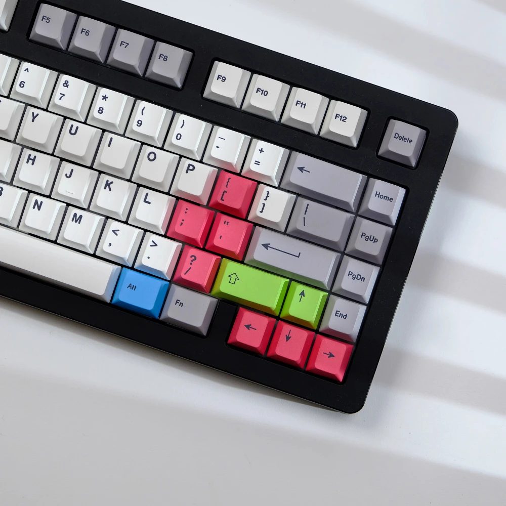 Comprar GMK-teclas japonesas modernas, perfil de cereza Blanco y gris Simple, teclas de sublimación de tinte PBT para teclado de juego mecánico MX Switch