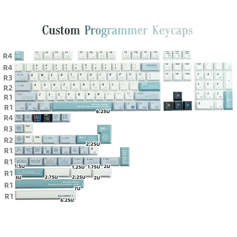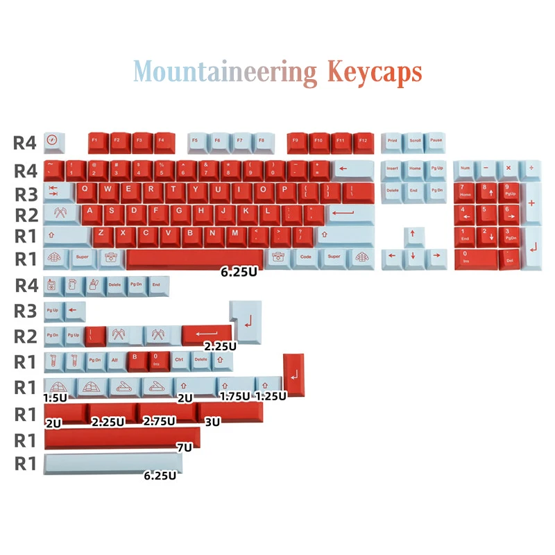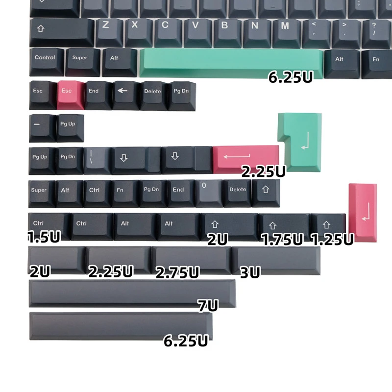 Número de teclas: 142 teclas, incluye 1,25 1.75U 2U cambio, 1.5U alt ctrl, ISO enter,2U 2.25U 2.75U 3U 6.25U 7U Barra espaciadora,.