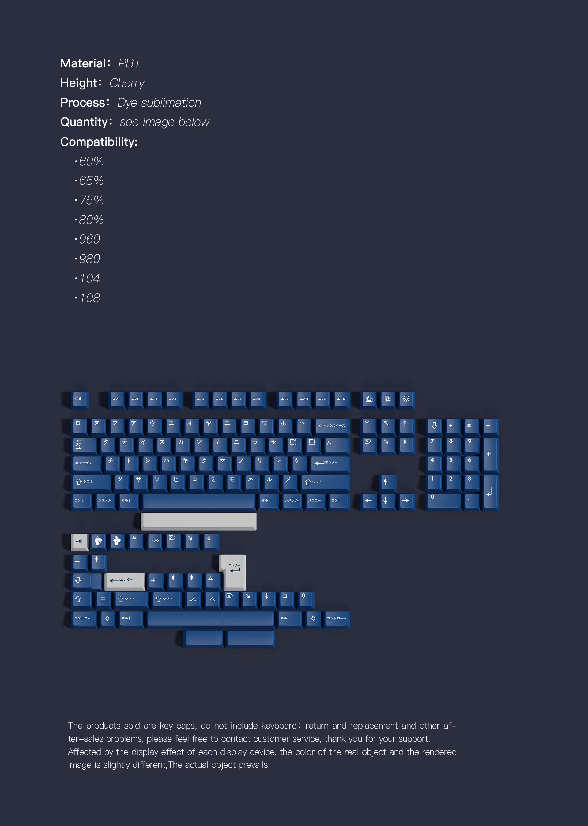 Número de teclas: 142 teclas, incluye cambio 1.25U 1.75U 2U, 1.5U Alt Ctrl, 2.25U 2.75U 6.25U 7U Barra espaciadora, ISO Enter