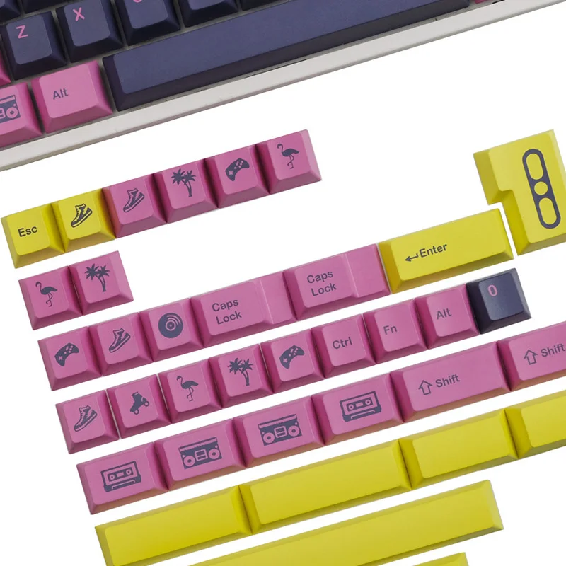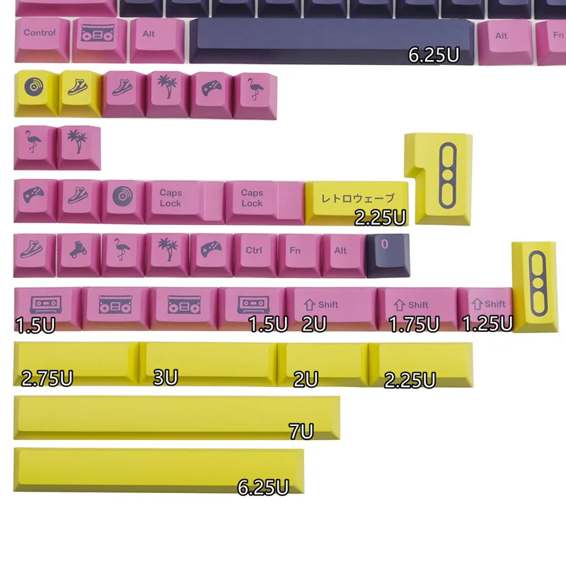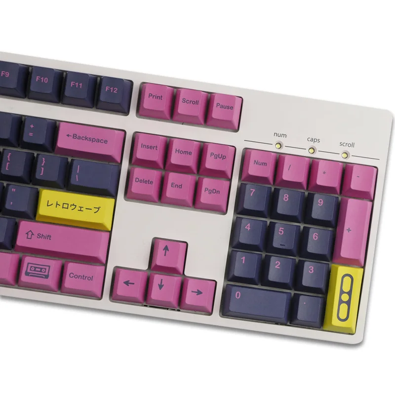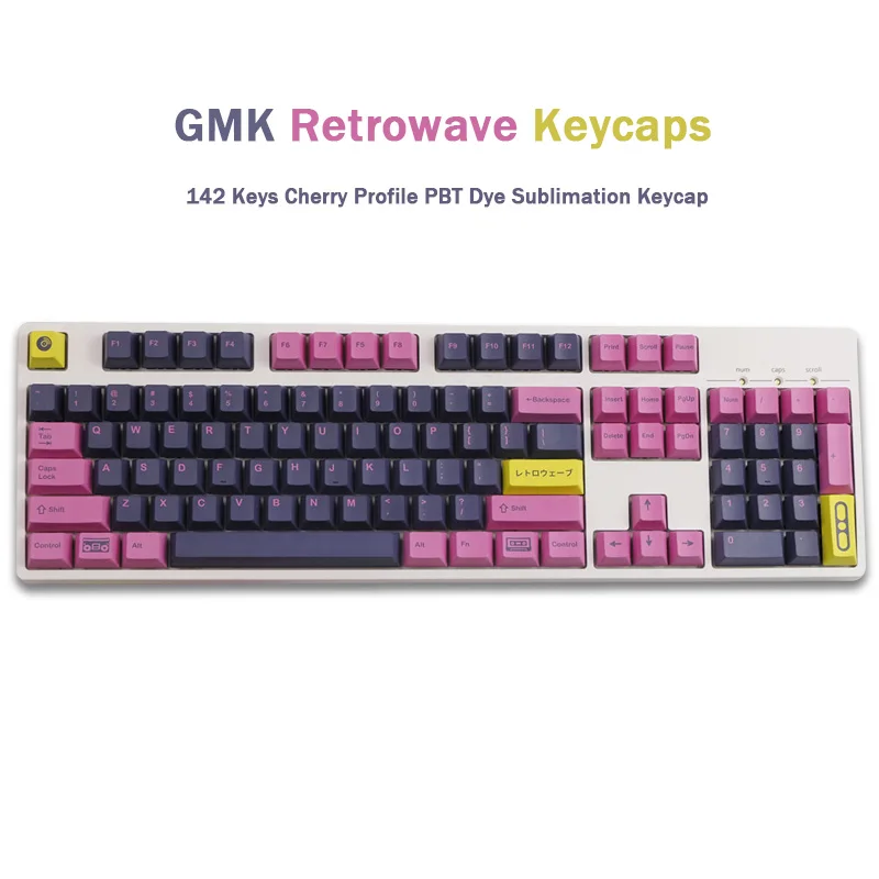 Comprar GMK-teclas Retrowave para teclado mecánico, accesorio con 142 teclas, perfil de cereza, tinte PBT, sublimación, para interruptor MX, con cambio de 1,75u 2U