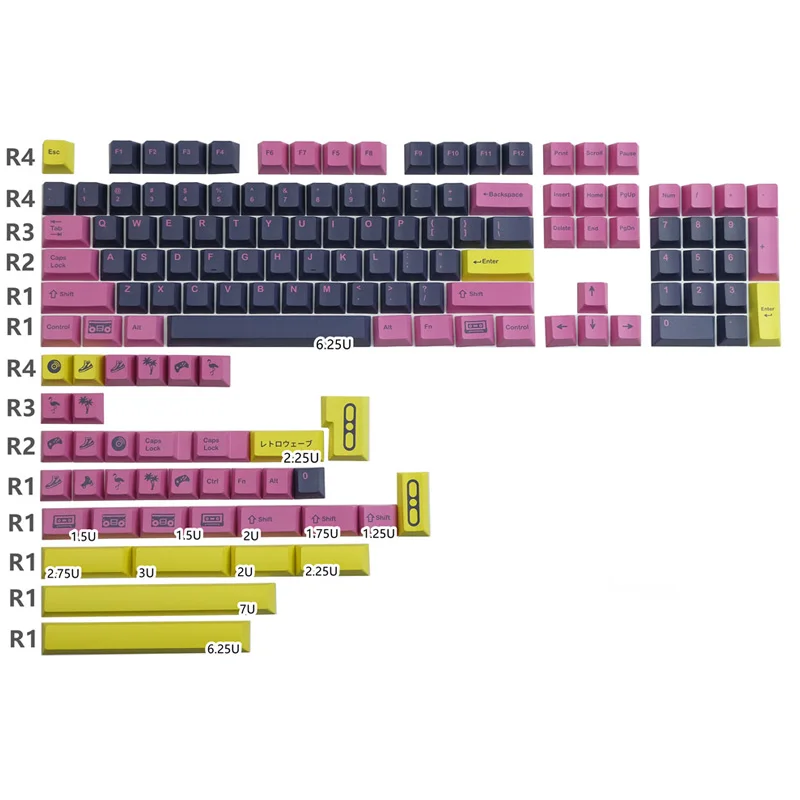 Número de teclas: 142 teclas, incluye cambio 1.25U 1.75U 2U, 1.5U enovl, 2U 2.25U 2.75U 3U 6.25U 7U Barra espaciadora