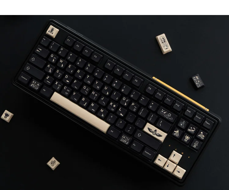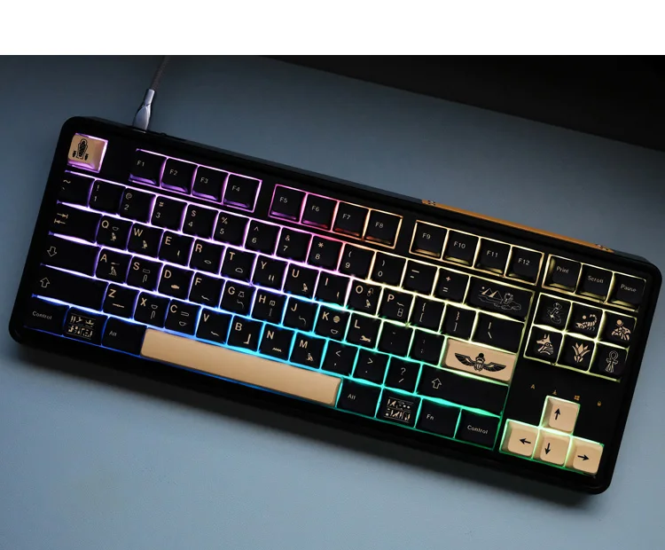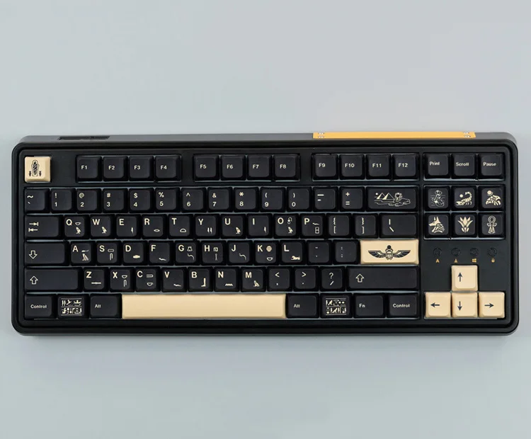 Comprar GMK-teclas temáticas de Faraón, 140 teclas, negro, amarillo, PBT, cinco lados, sublimación, perfil XDA para teclado mecánico MX Switch