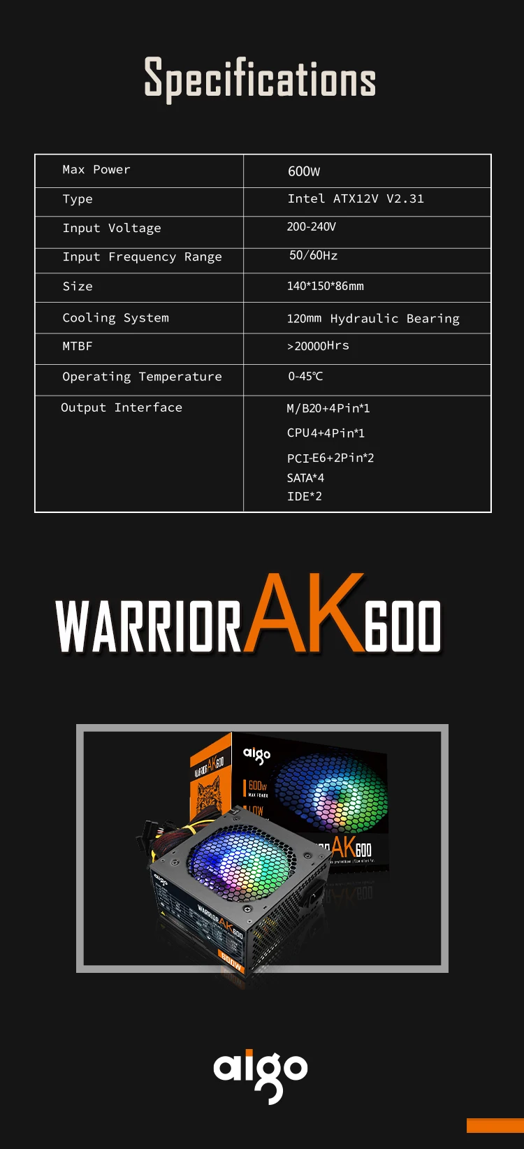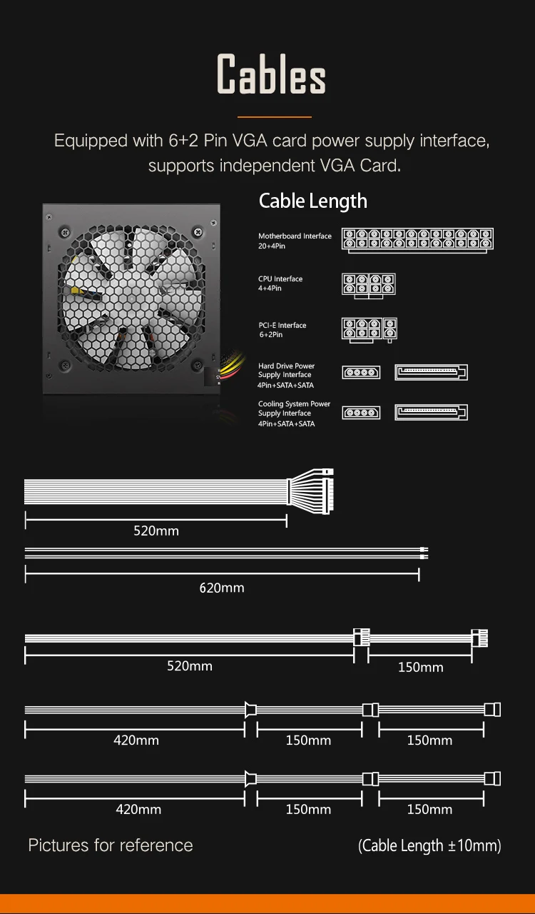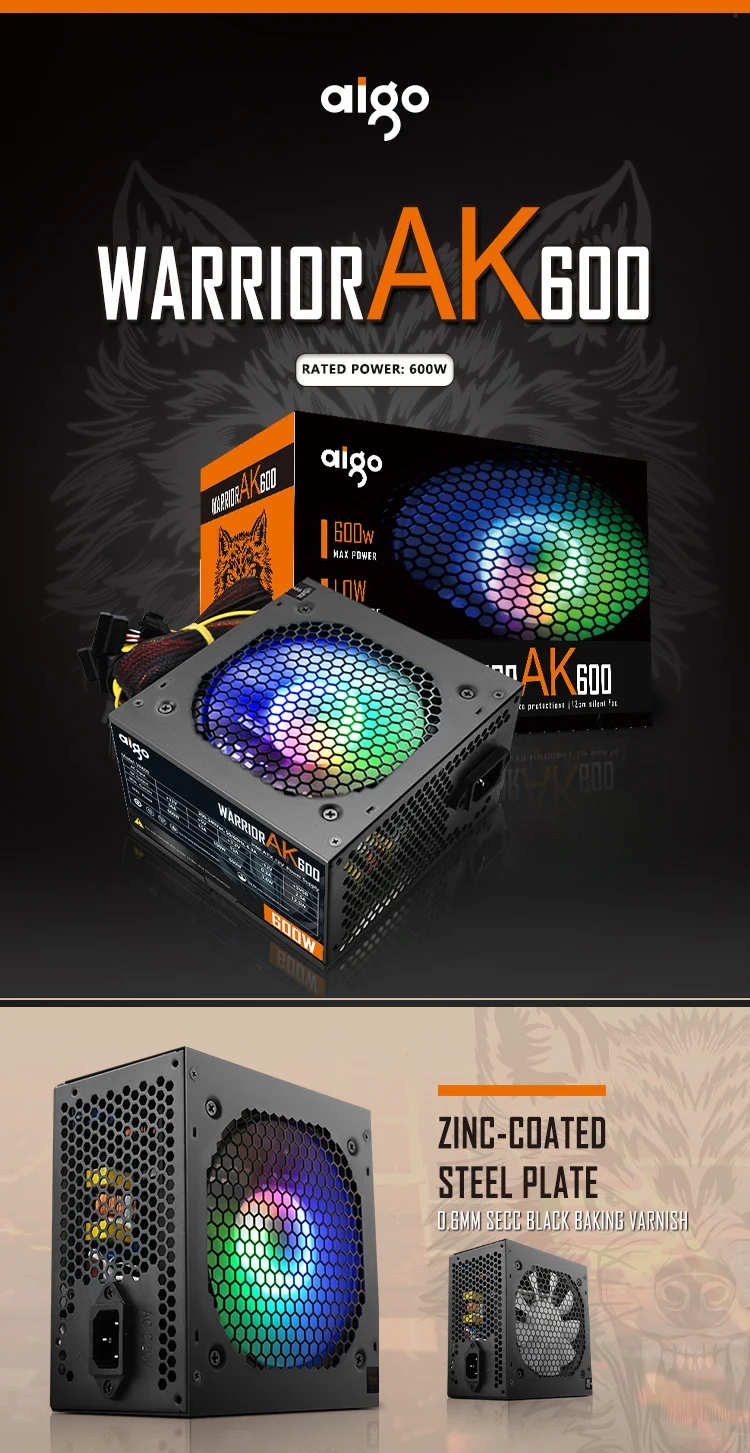 Comprar Go AK-Unidad de fuente de alimentación PSU para PC, ventilador negro silencioso para juegos, 600mm, rgb, 24 Pines, 12V, ATX, fuente de alimentación para ordenador de escritorio, BTC, 120 W