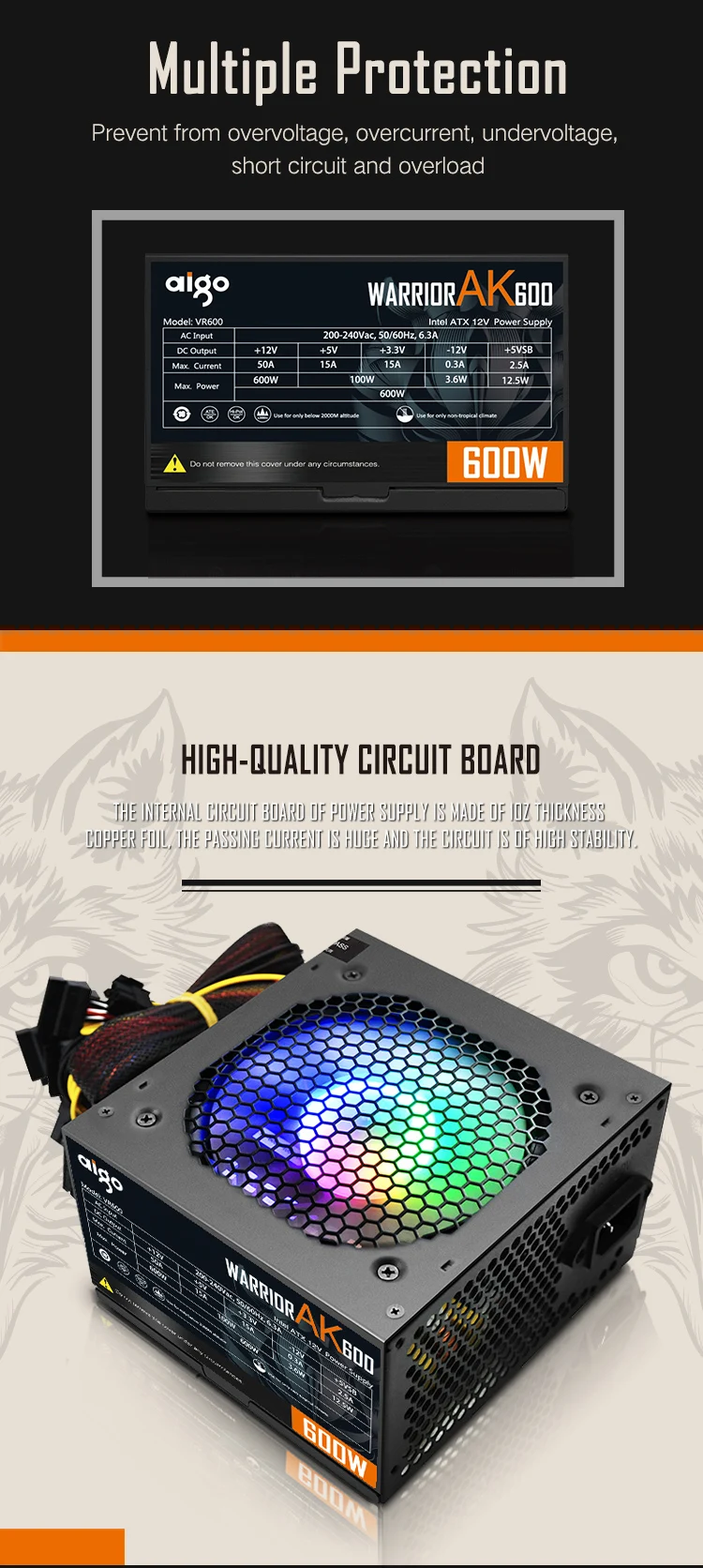 1: Potencia de 600 vatios, adecuada para la configuración de ordenadores de alta gama