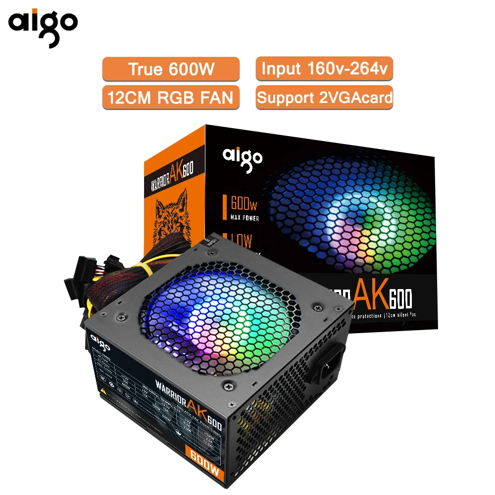 Comprar Go AK-Unidad de fuente de alimentación PSU para PC, ventilador negro silencioso para juegos, 600mm, rgb, 24 Pines, 12V, ATX, fuente de alimentación para ordenador de escritorio, BTC, 120 W
