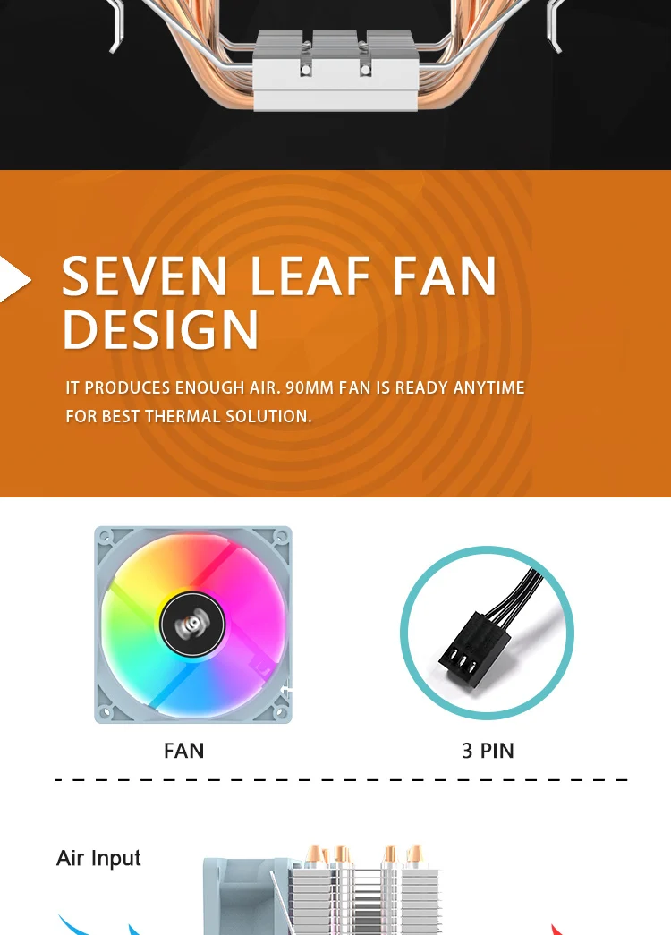 • Bajo nivel de ruido :Con un nivel de ruido de 21dBA, este ventilador de enfriamiento ofrece un ambiente tranquilo mientras mantiene el procesador fresco.