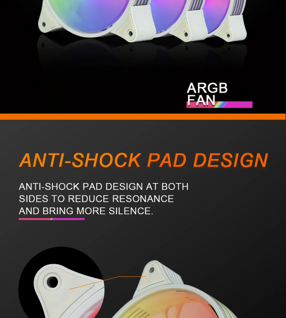 • Control RGB LED :Equipado con un control RGB LED, este ventilador no solo mantiene el ambiente fresco, sino que también añade un toque de estilo a su computadora.