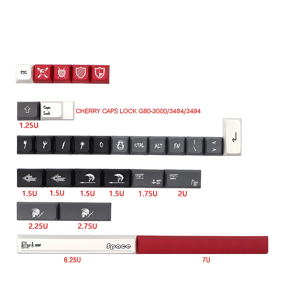Número de teclas: 138 teclas, incluye CAMBIO DE 1.75U 2U, 1.5U 2.25U 2.75U enovl, 6.25U 7U Barra espaciadora