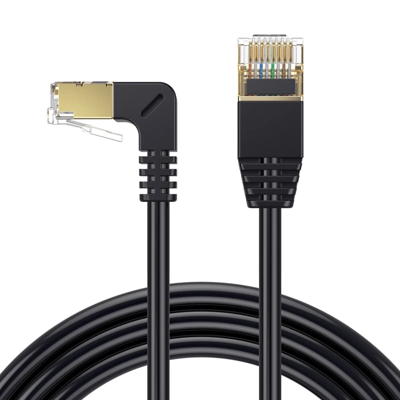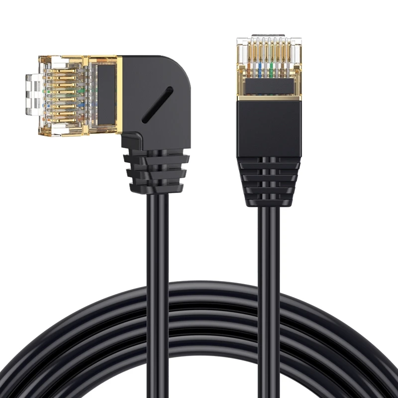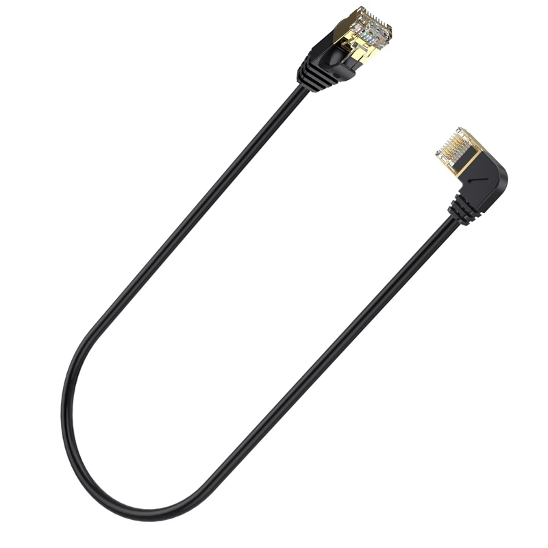 Cabezal de cristal chapado en oro ocho tipos de cable de red fino 10000 Gigabit ángulo recto del hogar alrededor de 90 grados arriba y abajo línea de conexión de red de alta velocidad