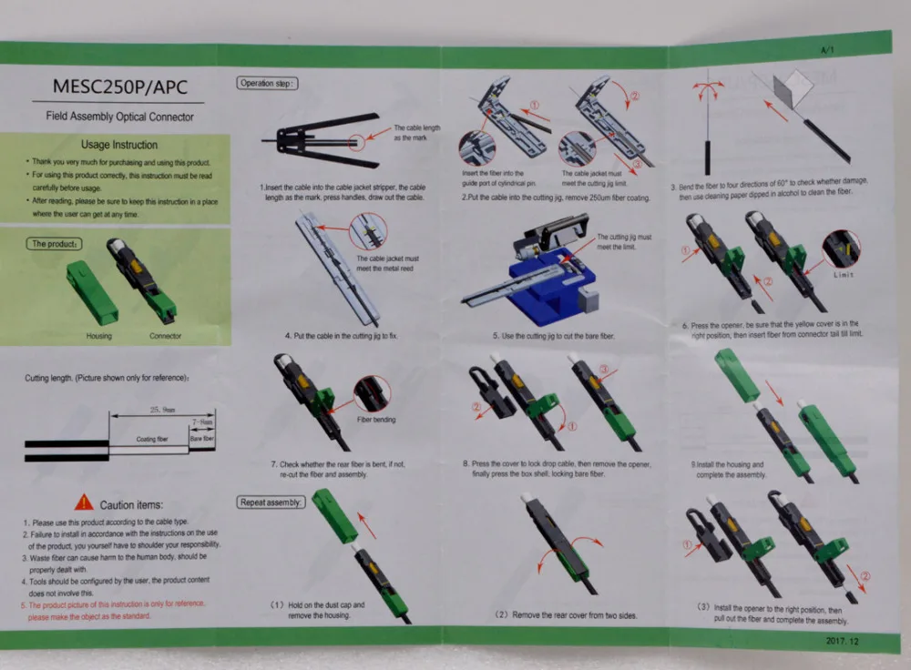 Conector de fibra óptica integrado SC, conector rápido en frío, que utiliza pérdida de inserción de férula Clase A tricíclica, operabilidad/reutilización/rendimiento estable, bajo costo, Instalación rápida, etc.
