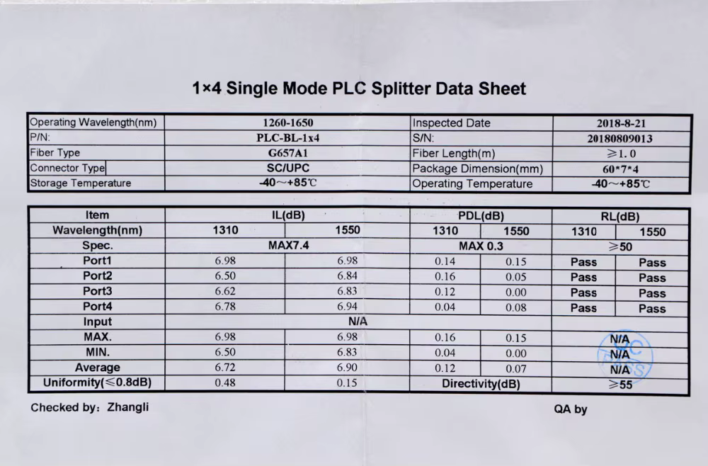 La pérdida es sensible a la longitud de onda de transmisión, cumple con los requisitos de diferentes longitudes de onda y tiene las ventajas de baja pérdida de inserción, uniformidad, buena directividad y excelente rendimiento