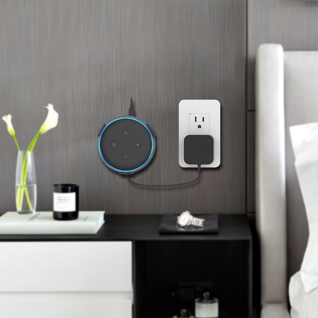 5. Práctico soporte de pared: el colgador de pared para altavoz para Echo Dot3 se puede utilizar para sostener el altavoz inteligente cuando no esté en uso y el cable de carga se puede quitar para mantener el altavoz en el soporte hasta su próximo uso.