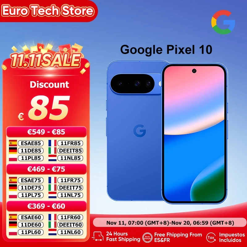 Comprar Google Pixel 10 5G Android Smartphone 120Hz 6,3 "OLED Super pantalla 4970 Mah batería 48MP + 13MP + 10,8MP cámara Android 16