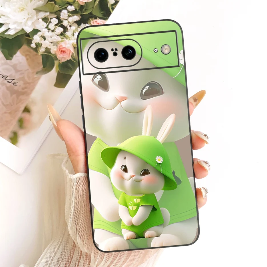 Para Google Pixel 8 Pro funda Pixel8A lindo gato conejo dibujos animados cubierta pintada funda de silicona suave para Google Pixel 8A Pixel8 Pro bolsas