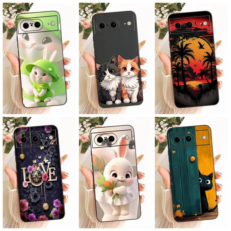 Para Google Pixel 8A funda Pixel8 Pro lindo gato conejo pintado cubierta trasera suave TPU funda de teléfono para Google Pixel 8 Pro Pixel8A Fundas
