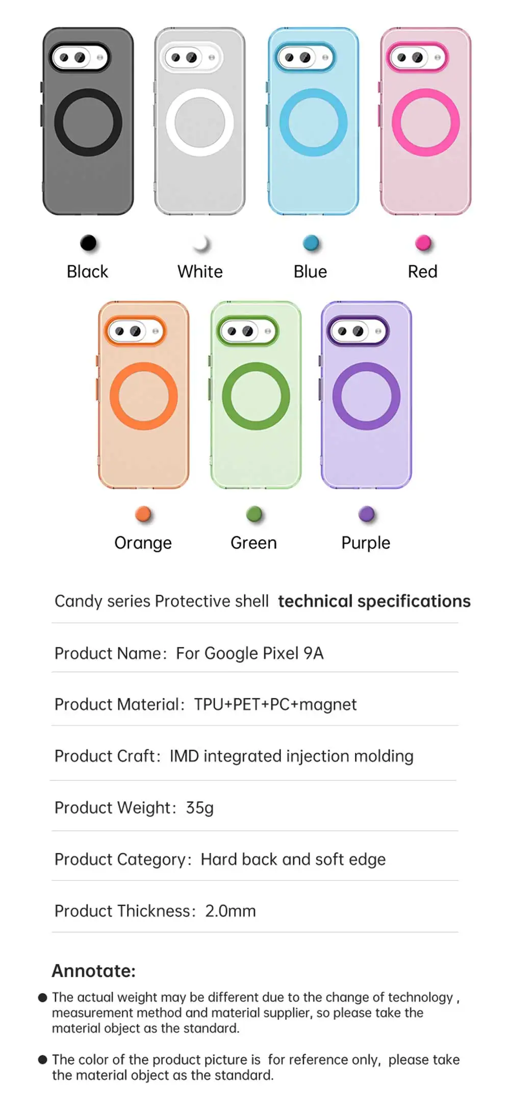 Comprar Para Google Pixel 9A Funda magnética de carga inalámbrica Funda Google Pixel 9A Coque mate translúcido PC contraportada Google Pixel 9A