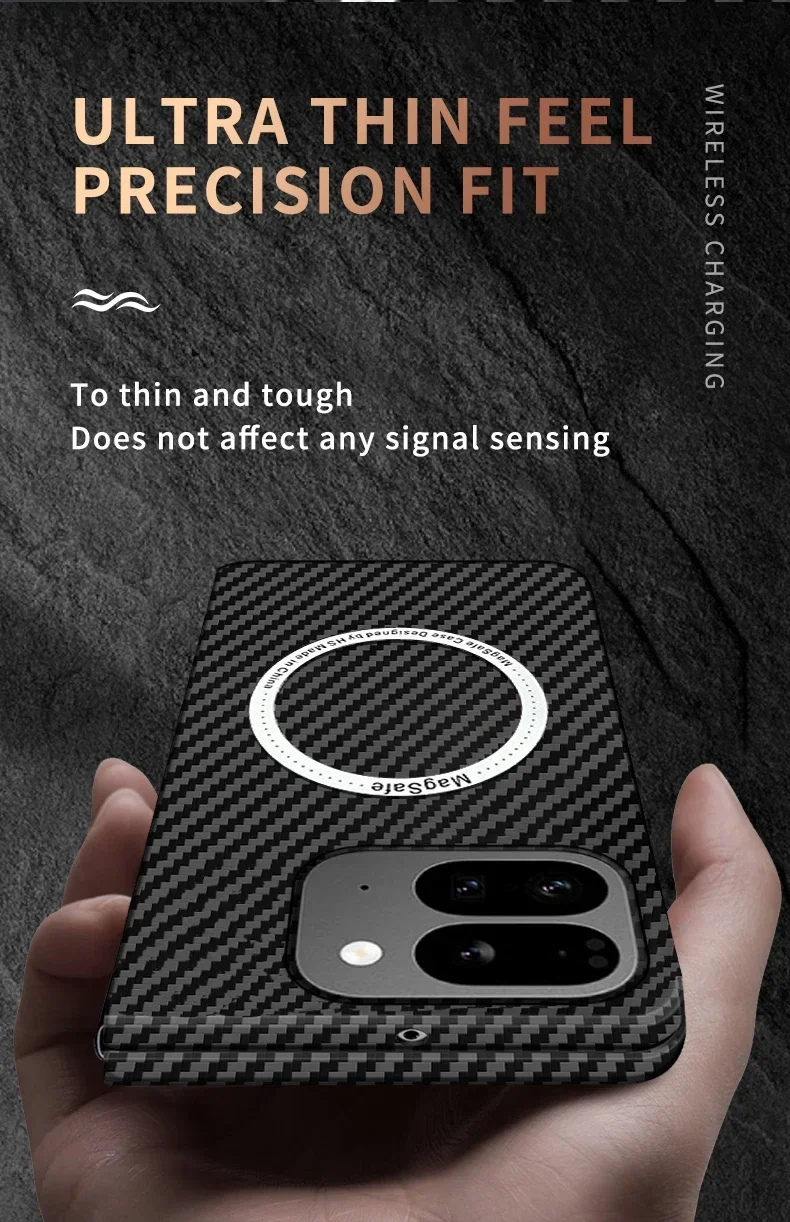 Comprar Para Google Pixel Fold 2 Fold2 funda para Magsafe fibra de carbono magnética Ultra delgada mate cubierta de protección dura para Pixel 9 Pro Fold