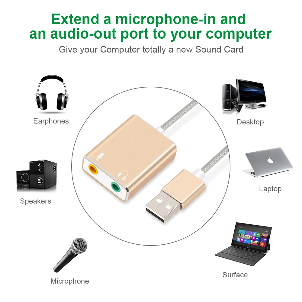 Comprar GOOJODOQ 7,1 tarjeta de sonido USB externa Jack 3,5mm adaptador de Audio USB auricular micrófono tarjeta de sonido para Macbook ordenador portátil PC
