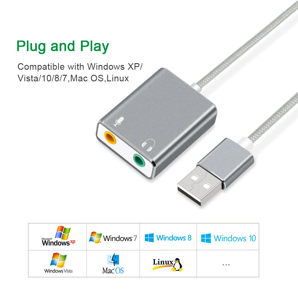 Comprar GOOJODOQ 7,1 tarjeta de sonido USB externa Jack 3,5mm adaptador de Audio USB auricular micrófono tarjeta de sonido para Macbook ordenador portátil PC