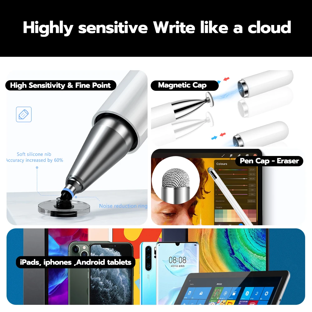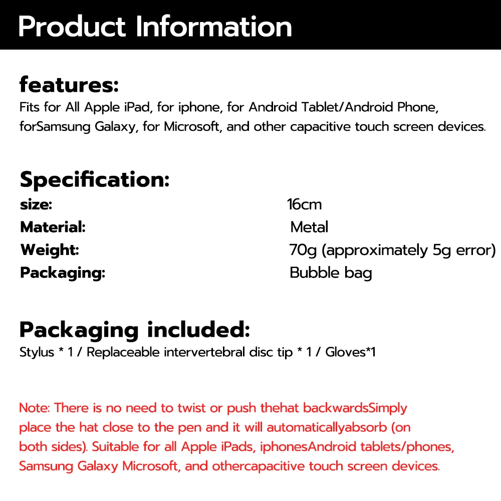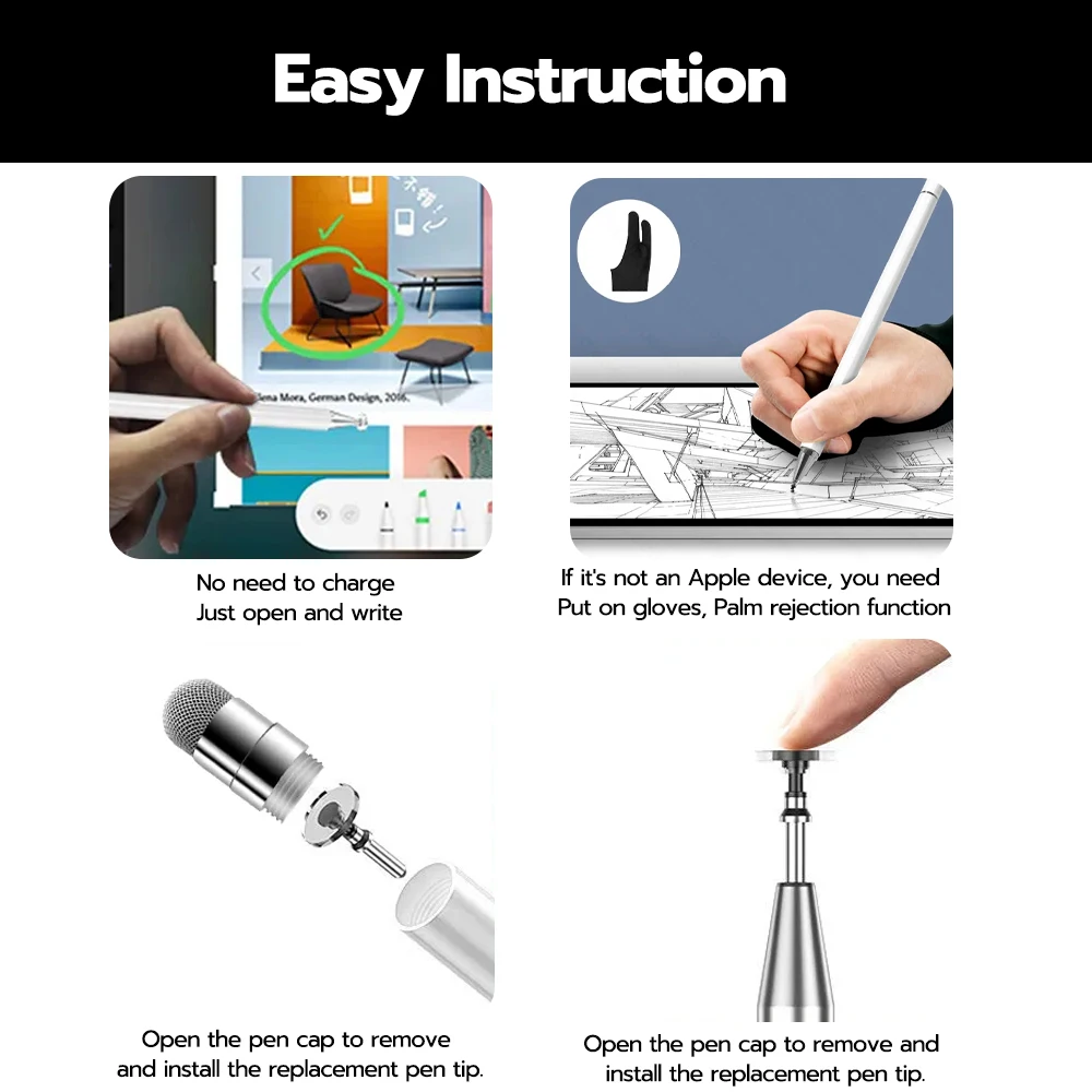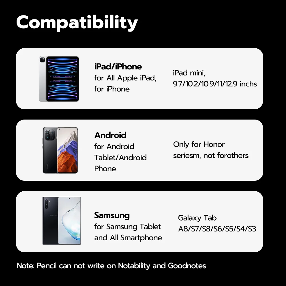 Se adapta a todos los iPad de Apple, para iPhone, para Android Tablet/teléfono Android, forsamsung Galaxy, para Microsoft y otros dispositivos de pantalla táctil capacitiva.