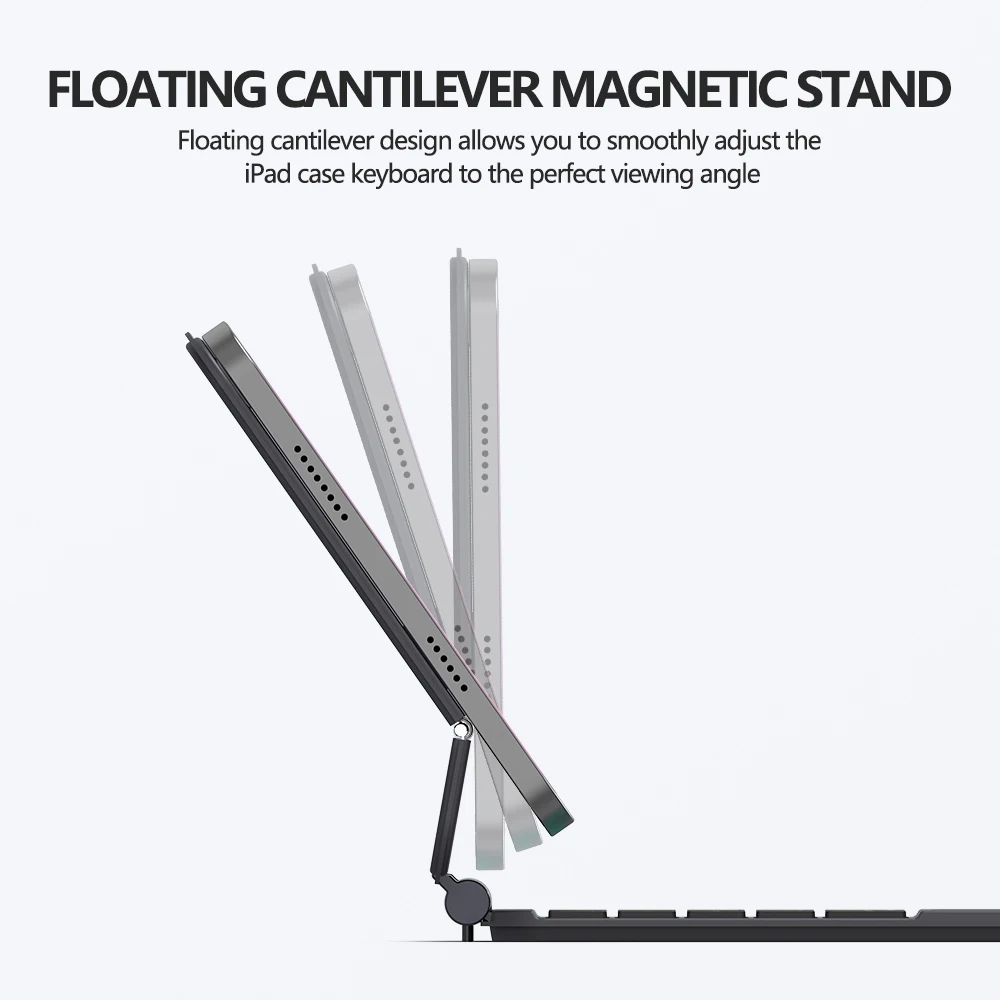 El diseño flotante en voladizo le permite ajustar suavemente el teclado de la funda del iPad al ángulo de visión perfecto