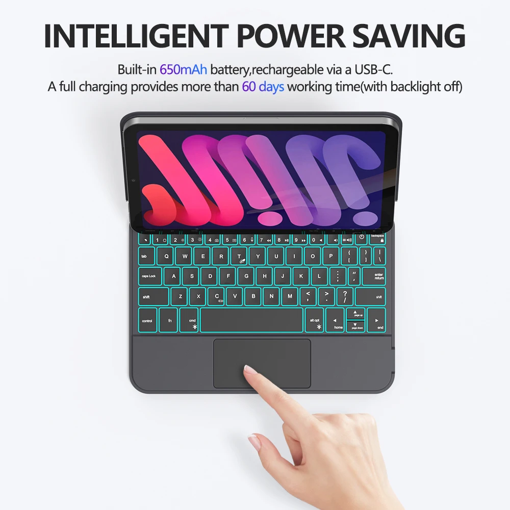 ★Función de retroiluminación: funda de teclado mágico iPad Mini 6th Generation con retroiluminación, Las teclas retroiluminadas le permiten usarlo por la noche o en lugares oscuros
