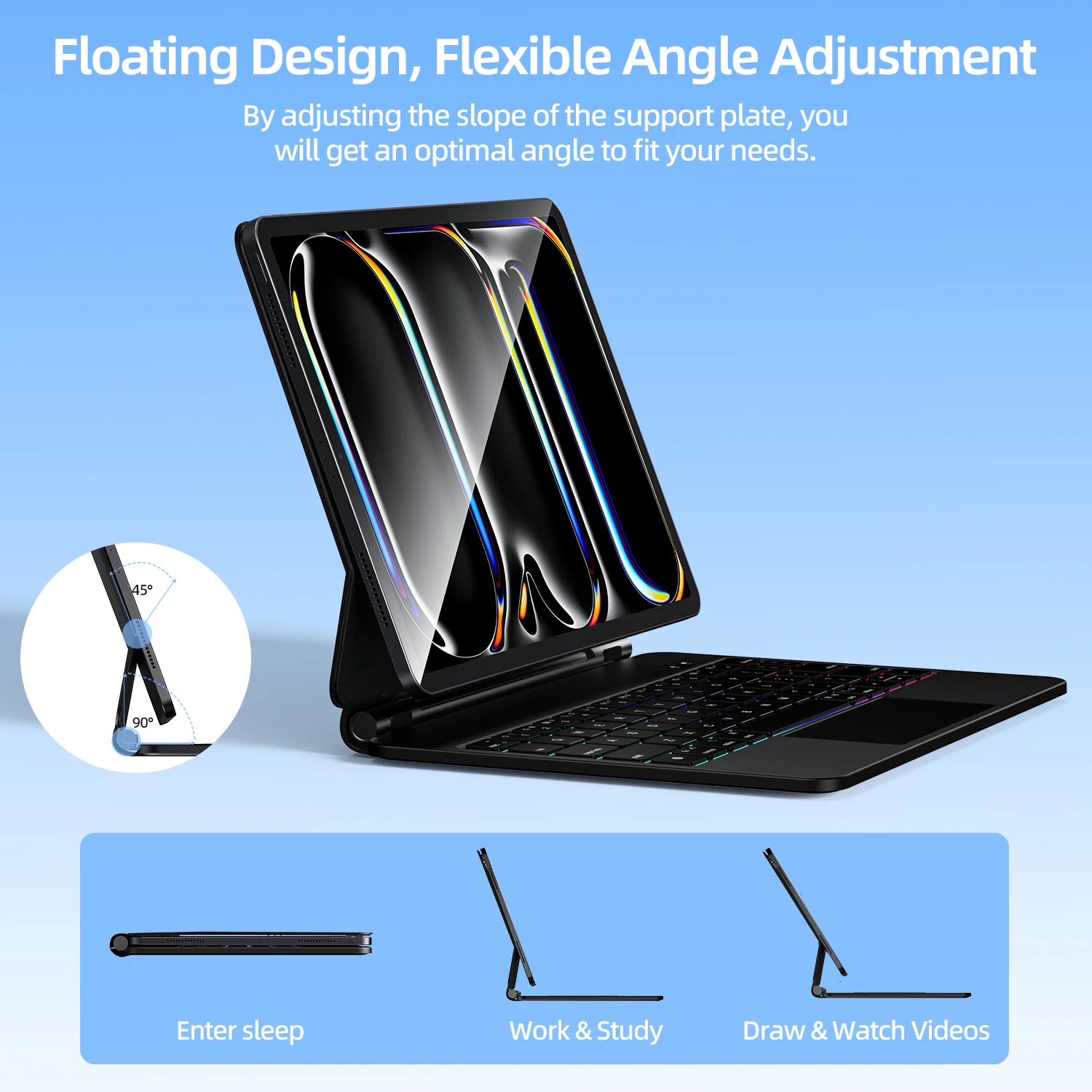 Comprar GOOJODOQ Funda con teclado mágico para iPad Pro 11 M4 iPad Air 4/5/6 Pin Pogo inteligente Bluetooth 5,2 teclado Trackpad multitáctil