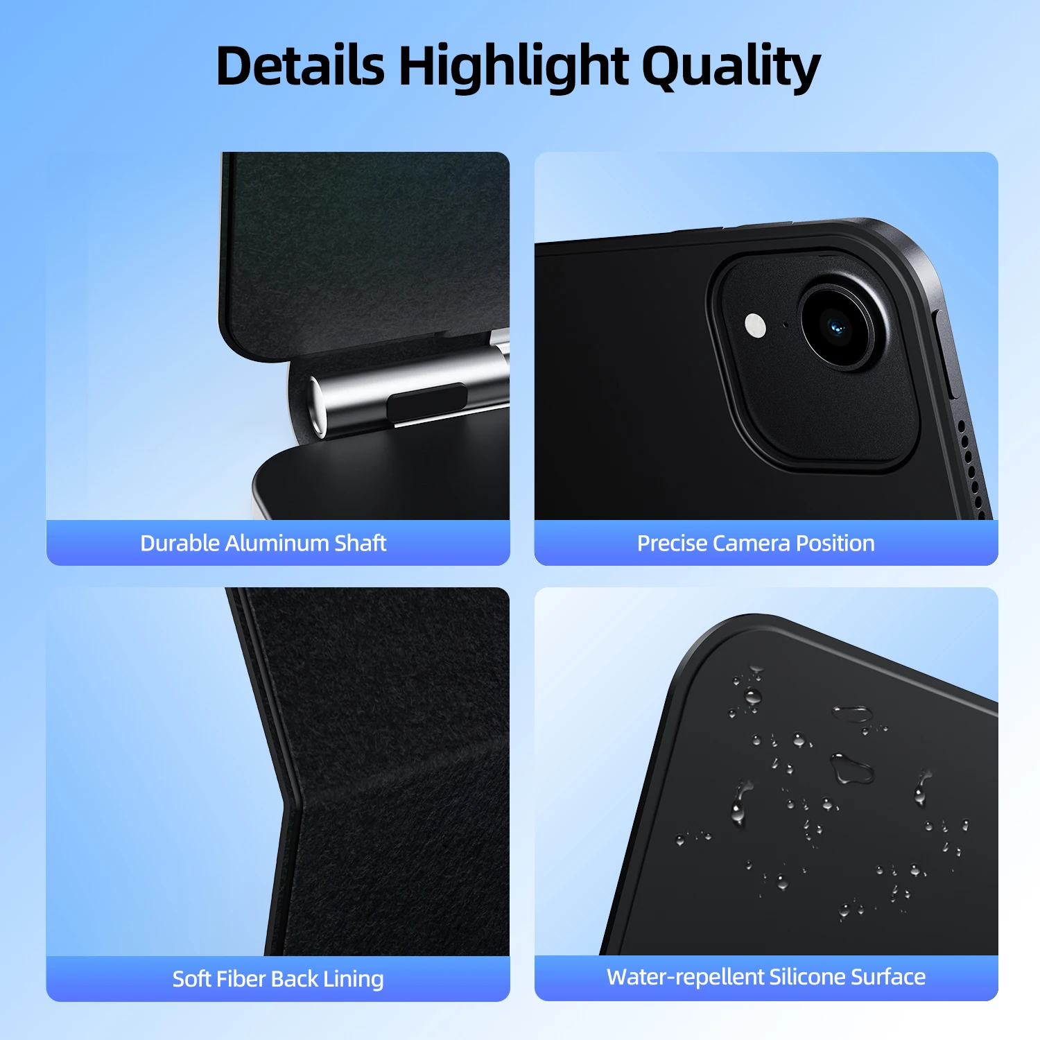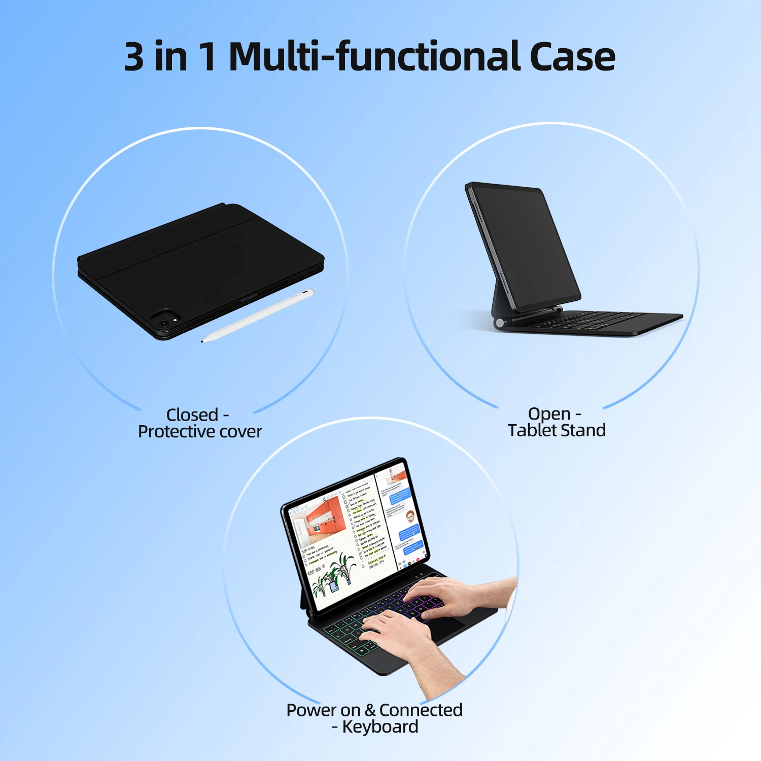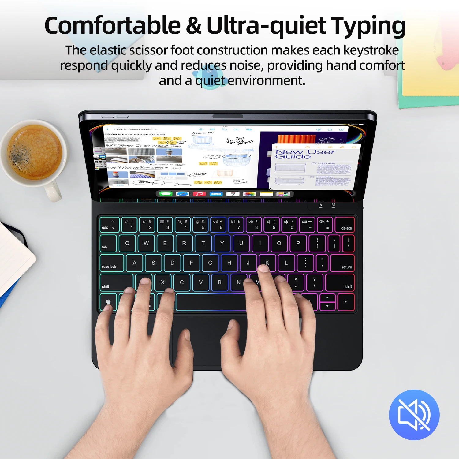 El iPad se fija firmemente a la funda del teclado sin preocuparse por caerse incluso cuando dibujas en la pantalla.