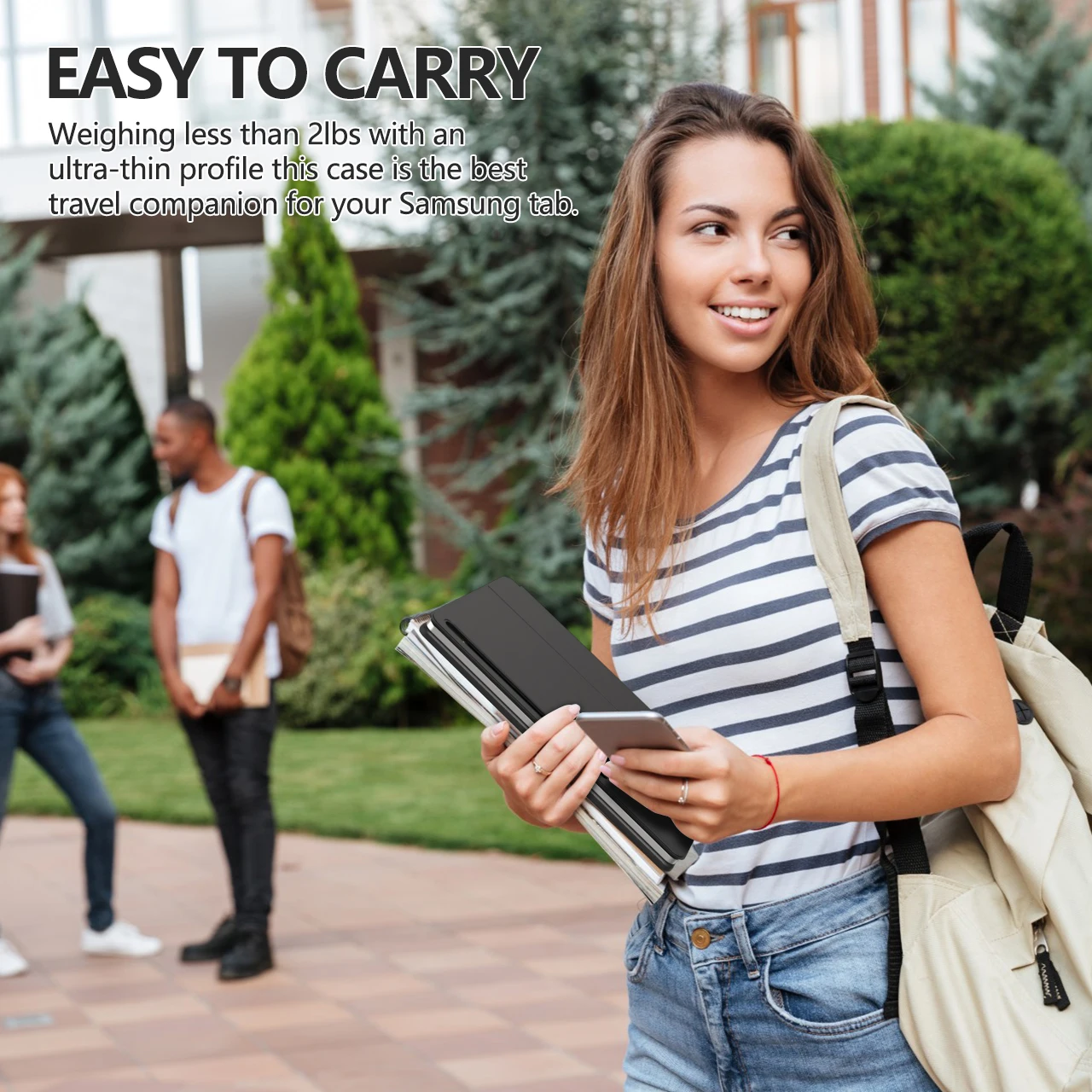 Con un peso de menos de 2 libras y un perfil ultrafino, esta funda es el mejor compañero de viaje para tu Samsung Tab.