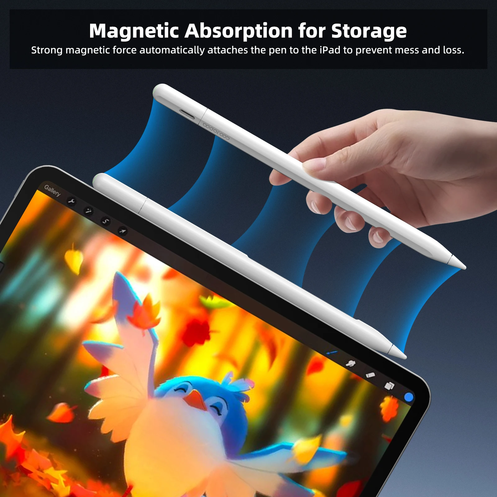 La fuerte fuerza magnética conecta automáticamente el lápiz al iPad para evitar el desorden y la pérdida.