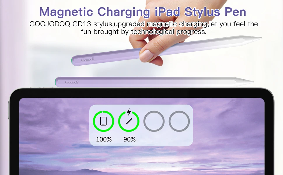 Adsorbe el lado del iPad para cargar, la potencia del lápiz se muestra en la pantalla, Di adiós a los cables de carga problemáticos.