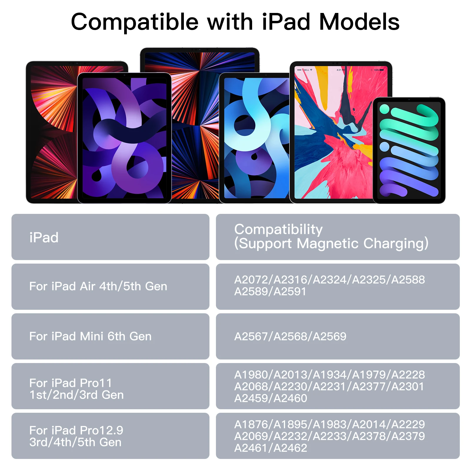 Para iPad Pro12.9 3ª/4ª/5ª generación: A1876/A1895/A1983/A2014/A2229/A2069/A2232/A2233/A2378/A2379/A2461/A2462