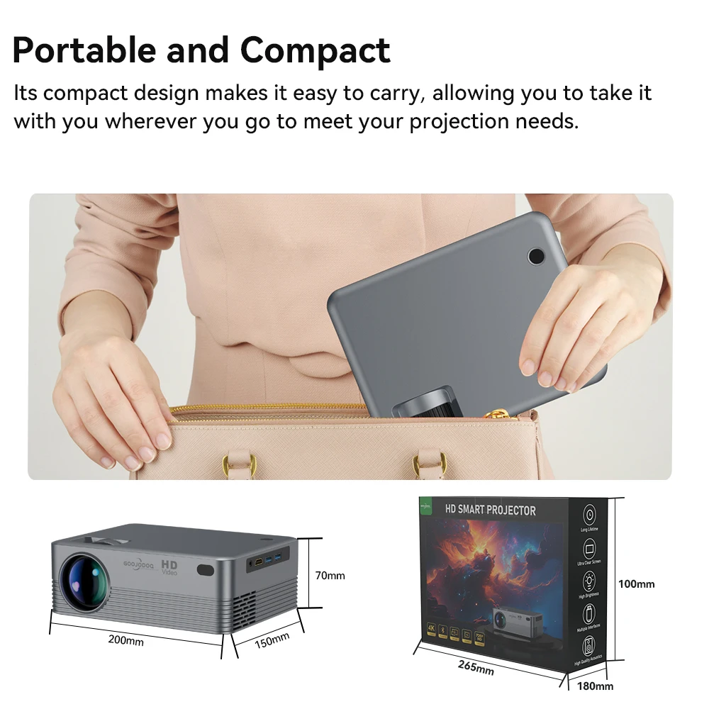 Comprar GOOJODOQ-miniproyector LED portátil Full Hd 1080P 4K, Wifi, 2,4G 5G, para Android, IOS, Smartphone, vídeo, casa, oficina, Camping