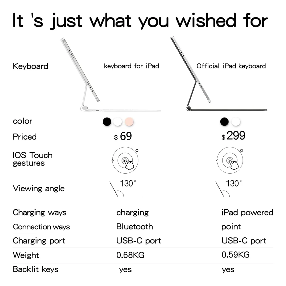 Comprar GOOJODOQ teclado mágico para iPad Pro 11 pulgadas 4a/3a/2a/1a generación iPad Air 6 11 2024 Air4 Air 5 soporte flotante teclado Bluetooth
