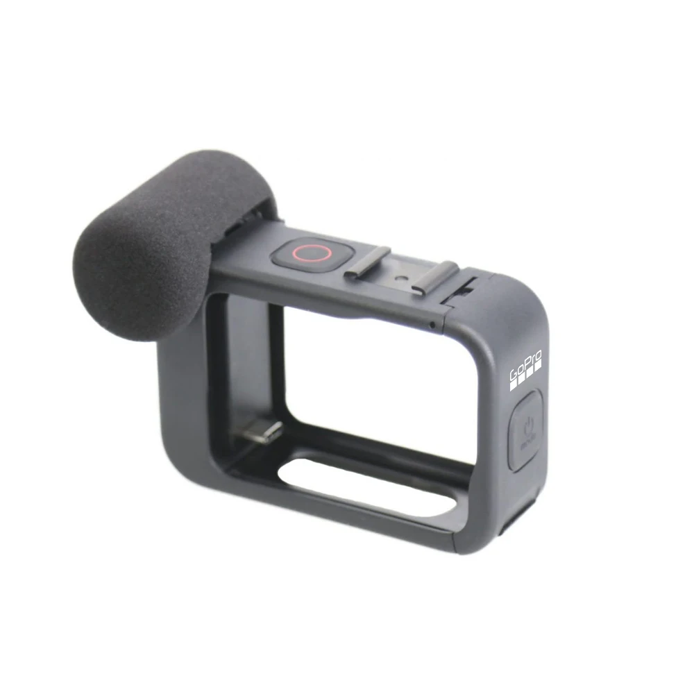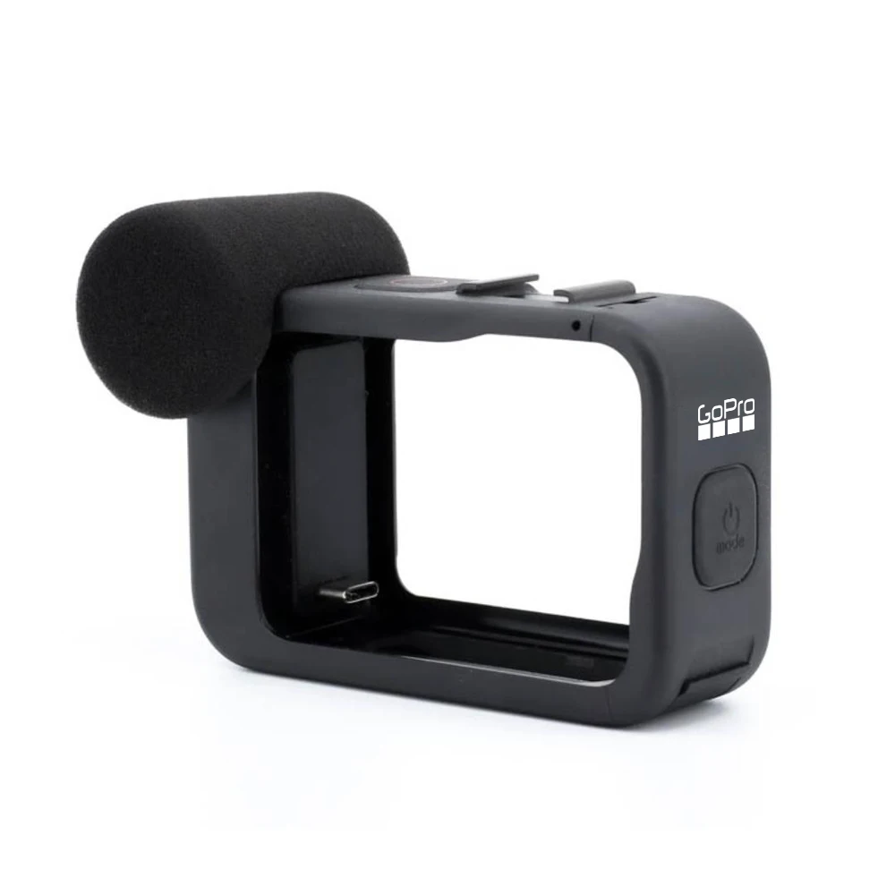 El GoPro Media Mod para HERO9/HERO10/HERO11 Black es una carcasa externa que equipa la cámara con un micrófono direccional incorporado con supresión de viento, puerto de micrófono de 3,5mm, salida micro-HDMI, Y dos soportes de zapata fría para fijar accesorios. El Media Mod resistente a la intemperie cubre la cámara en los cuatro lados mientras proporciona acceso al soporte inferior, a las pantallas delantera y trasera y a todos los controles clave.