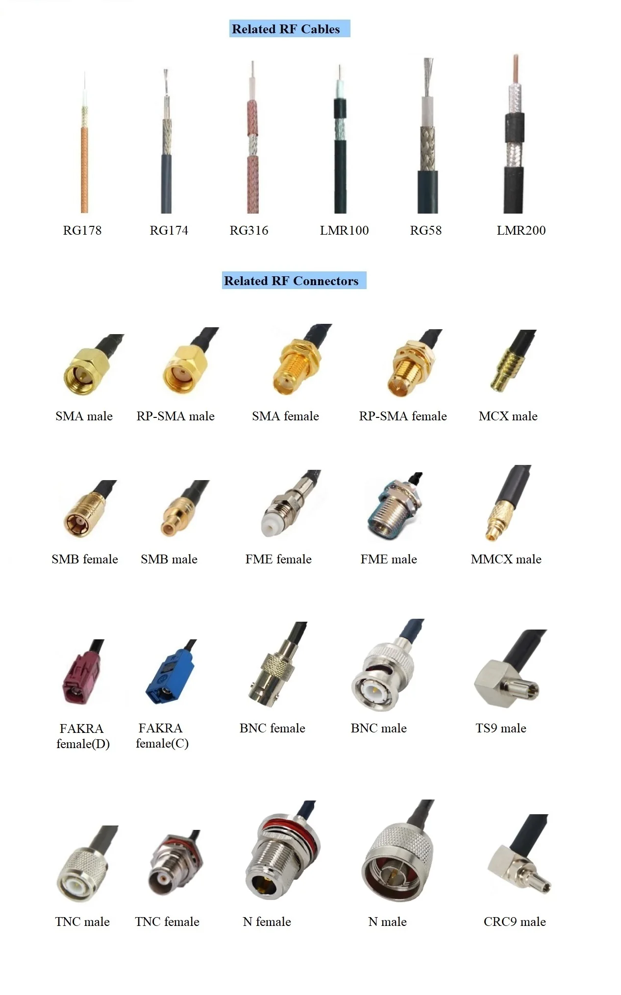 IPEX, FME, FAKRA, MMCX, MCX, BNC, TNC u otros