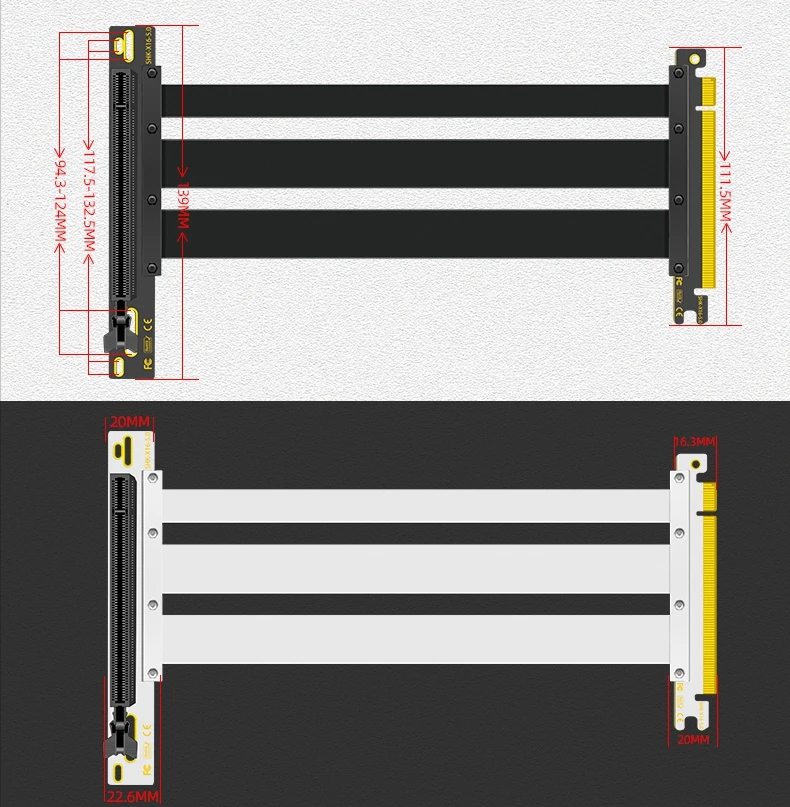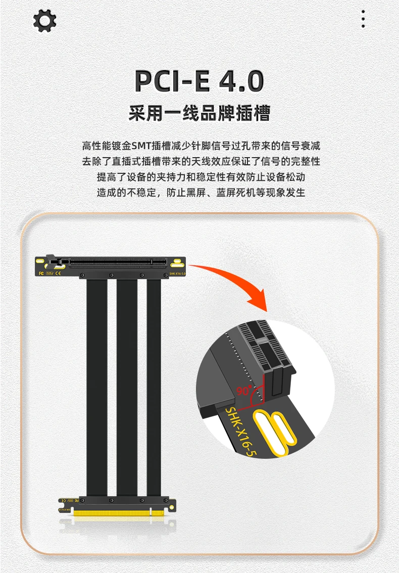 - 2, de 64 GB/s Más (bidireccional) verdadero PCIe 5,0 PCIe 4,0 elevador de rendimiento a través de cables de alta velocidad extremos blindados raros y líneas eléctricas dedicadas para señales sin pérdidas en rango. Cables y conectores rediseñados para aplicaciones PCIe 4,0 85ohm para GPU, contactos chapados en oro soldados a mano de calidad para la integridad de la señal.