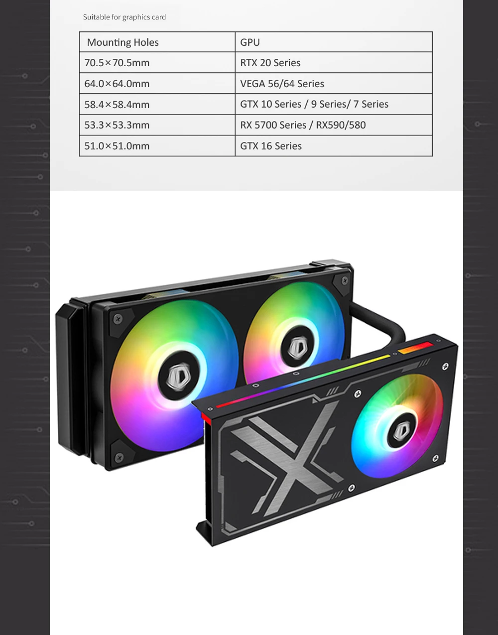 Kit de refrigeración por agua GPU AIO Universal para RTX20/GTX7,9,10,16/RTX5700,RX580.RX590/VEGA56/64 tarjeta gráfica todo en uno VGA Cooler ARGB