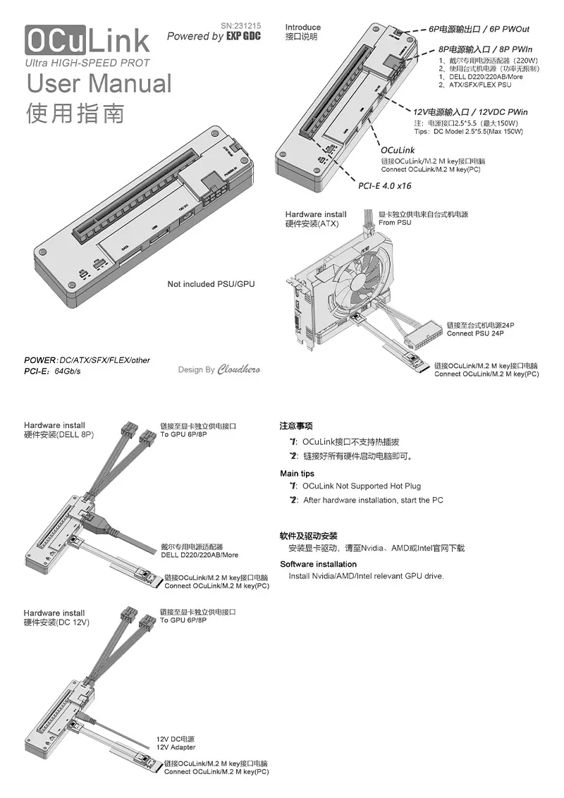 GPU Dock PCIe 4,0 X4, estación de acoplamiento de alta velocidad para Mini PC, Notebook, portátil a tarjeta gráfica de vídeo externa, M.2 M Key to OCuLink