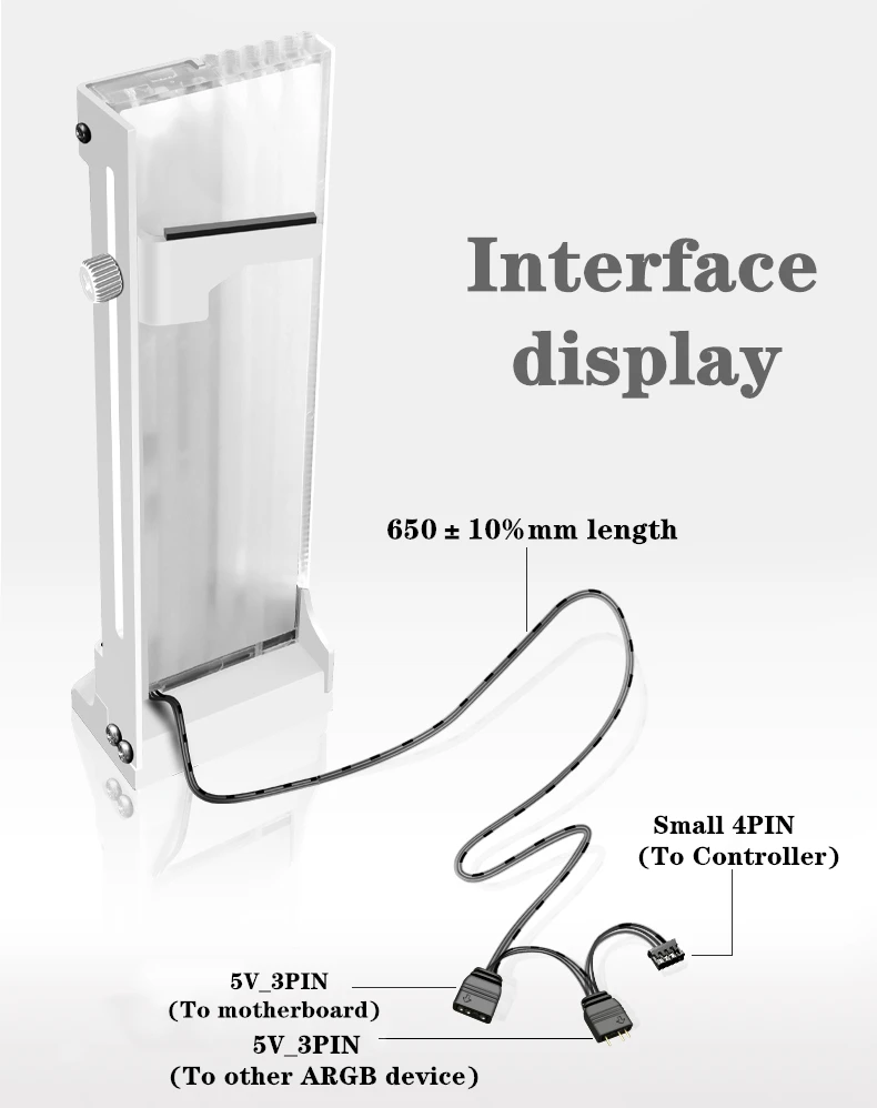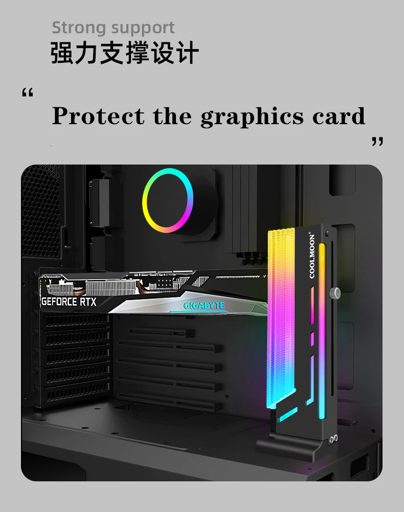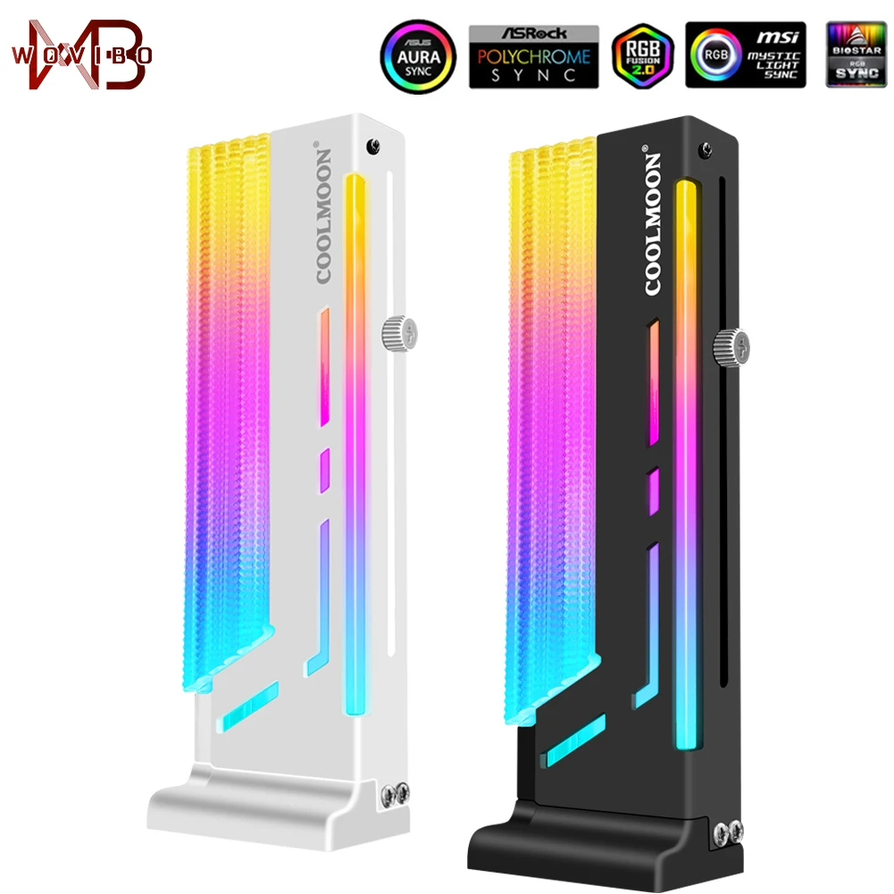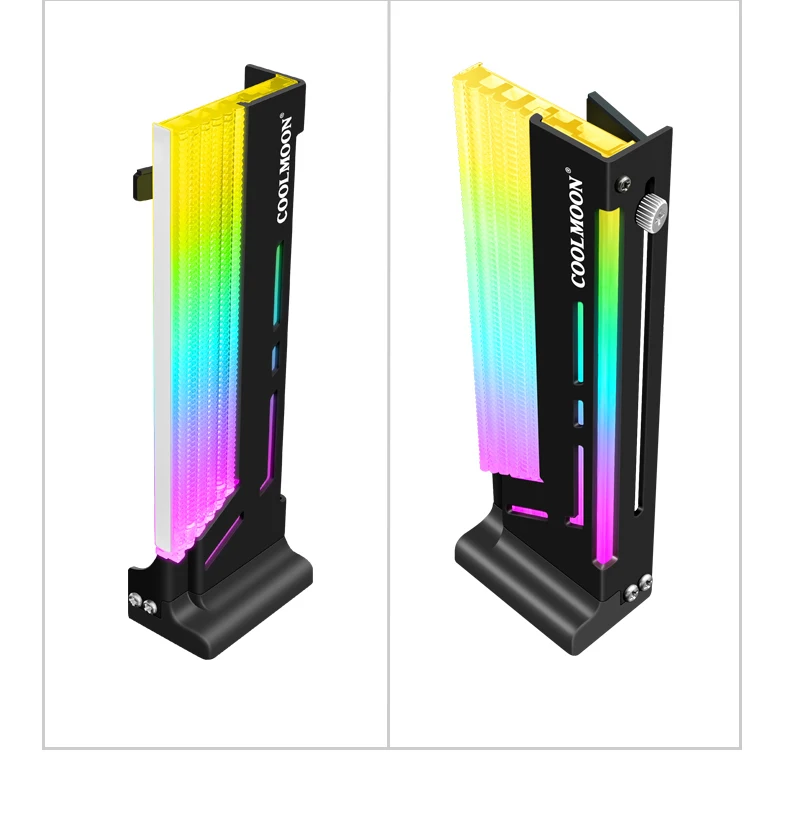 5. Altura ajustable, adecuada para una variedad de tarjetas gráficas. Soporte de soporte de video de gráficos CoolMoon GPU para caja de computadora Soporte de tarjeta de video de aleación de aluminio 5V 3PIN RGB ARGB Aura Sync