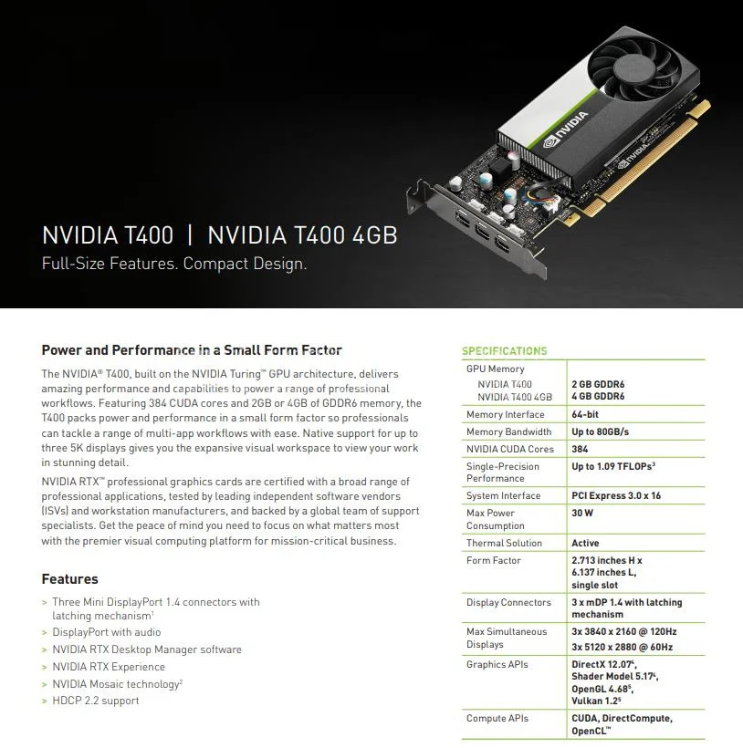 Comprar GPU para NVIDIA T400 4 GB GDDR6 tarjetas gráficas