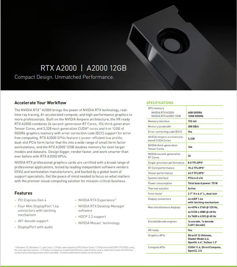 Comprar GPU para tarjetas gráficas NVIDIA RTX A2000 6GB GDDR6