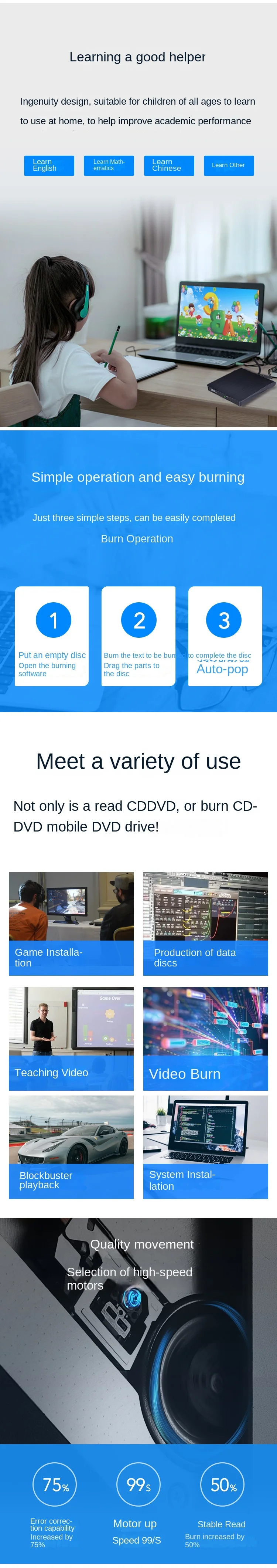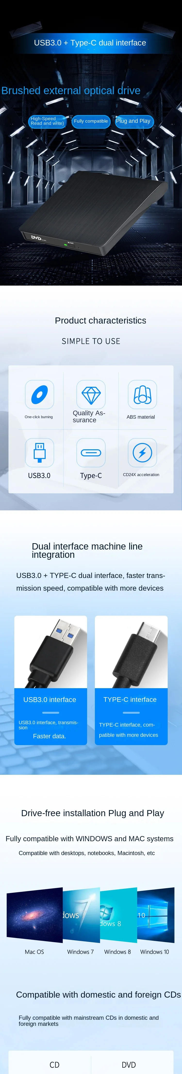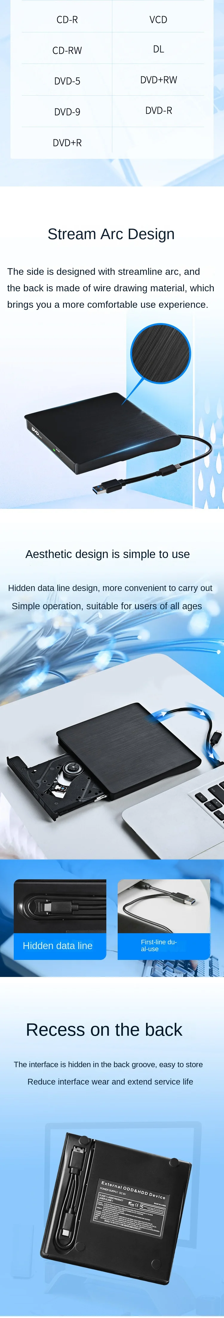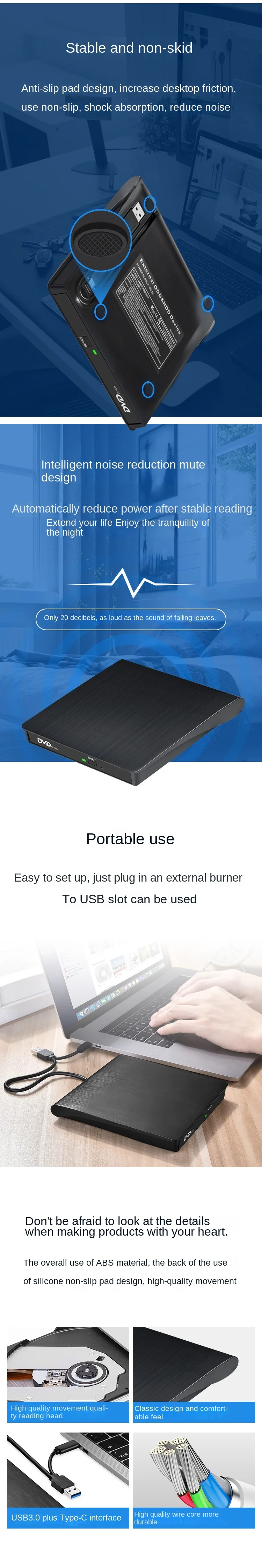 Comprar Grabador de CD y DVD externo Delgado, Unidad 2 en 1 USB 3,0 tipo C, lector de unidad óptica para ordenador portátil y PC