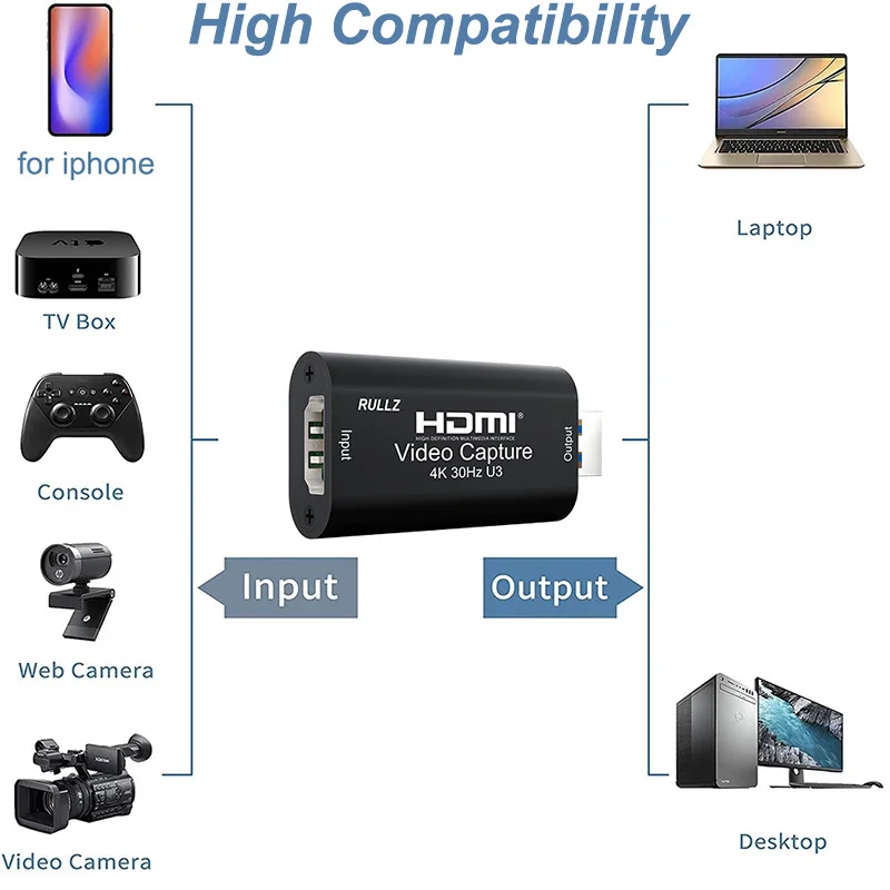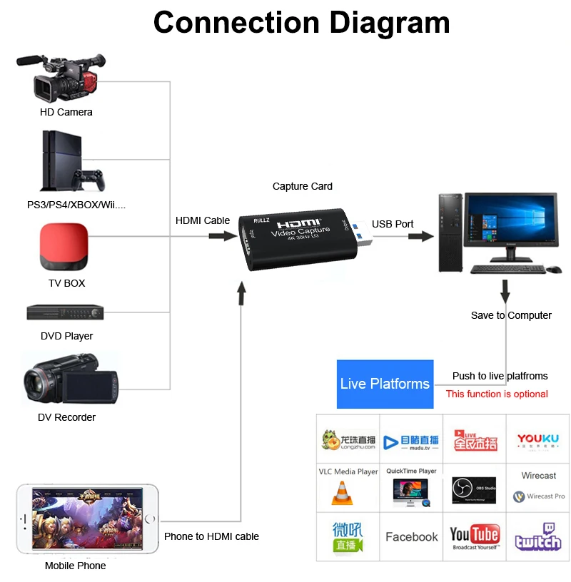 * Soporta la mayoría de software de adquisición, como VLC,OBS ,Amcap, etc.