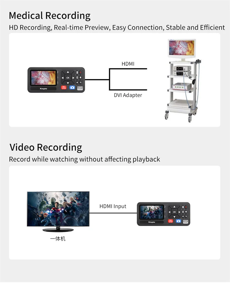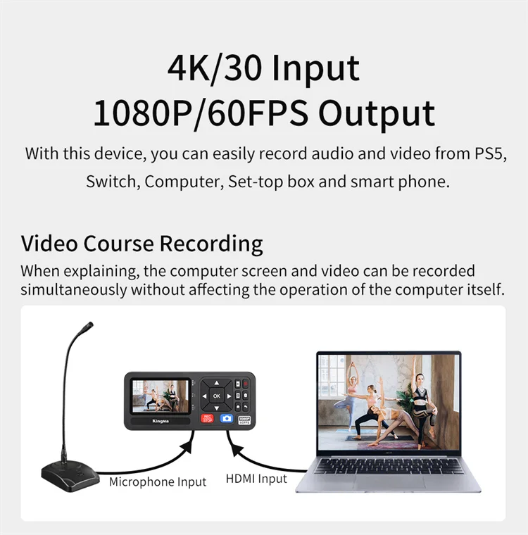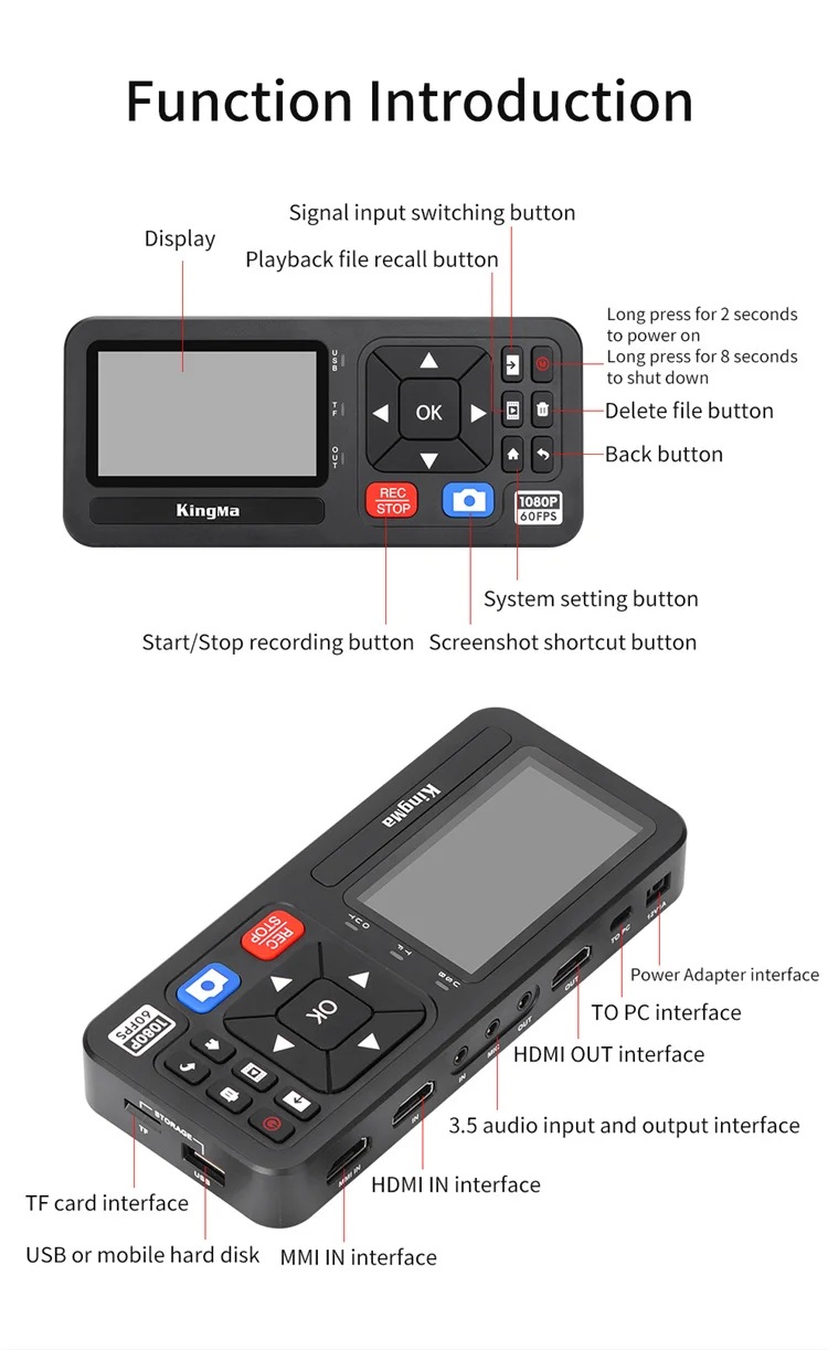【Grabación HD y gran capacidad de almacenamiento】La grabadora HDMI King Ma graba videos en resolución 1080P 60FPS y los guarda directamente en una unidad USB o tarjeta de memoria TF/SD. Con un tamaño de archivo máximo de 16GB, nuestro grabador de vídeo admite varios formatos, incluidos NTFS, FAT32, exFAT, MBR y GPT. Con la tarjeta de memoria, puede navegar fácilmente por su contenido grabado en otros dispositivos.